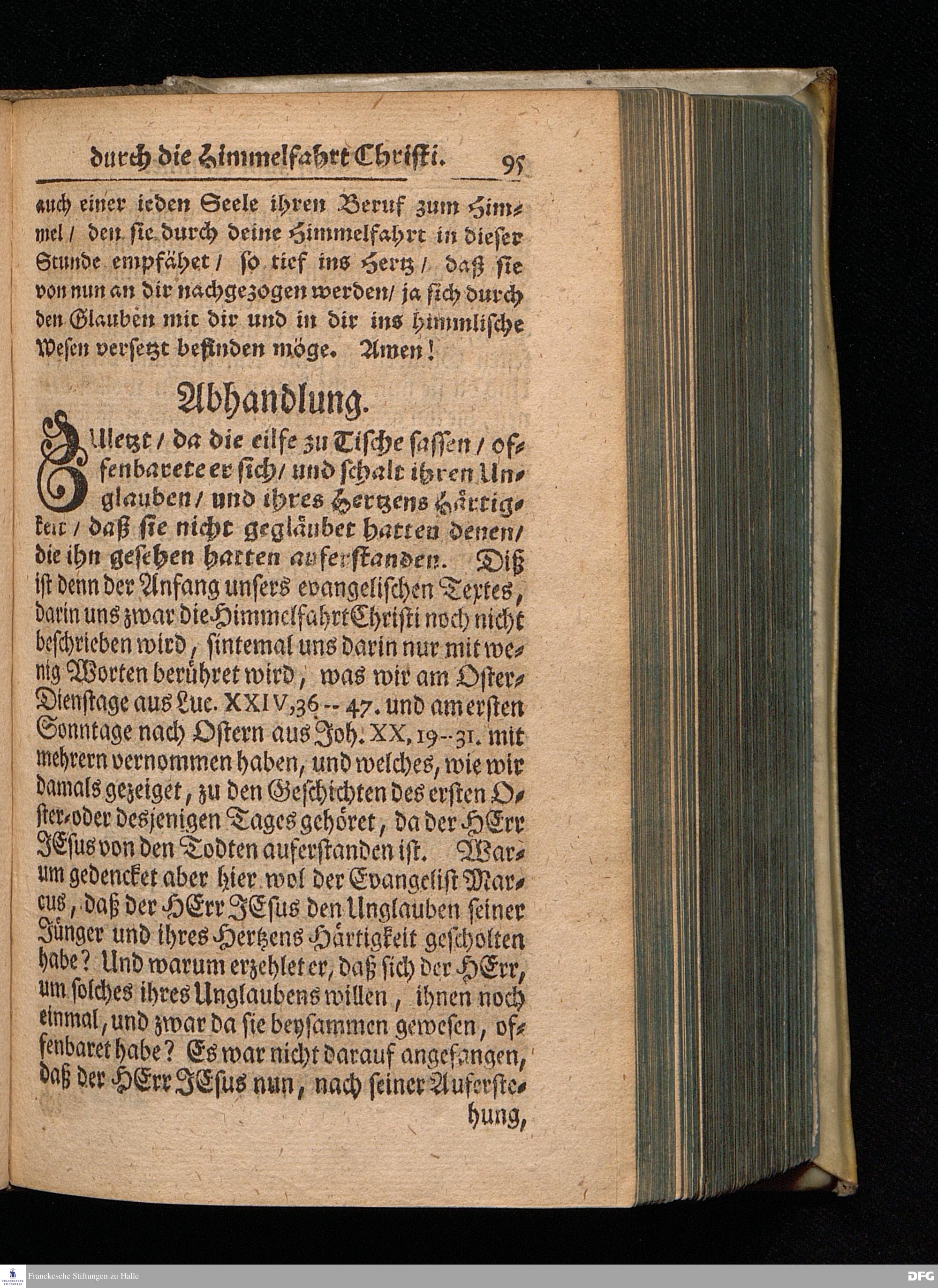 August Hermann Franckens / S.Theol.Prof.& Past. zu S.Ulrich, und des Gymnasii Scholarchæ, Kurtze Sonn= und Fest=Tags=Predigten / Darinnen Vornemlich zum wahren / lebendigen / Kraft=vollen und in guten Früchten sich beweisenden Glauben, die nöthige Aufweckung und Anweisung gegeben wird. Die andere EDITION, mit einer neuen Vorrede und einem Register versehen. HALLE, in Verlegung des Wäysen=Hause MDCCXVIII.