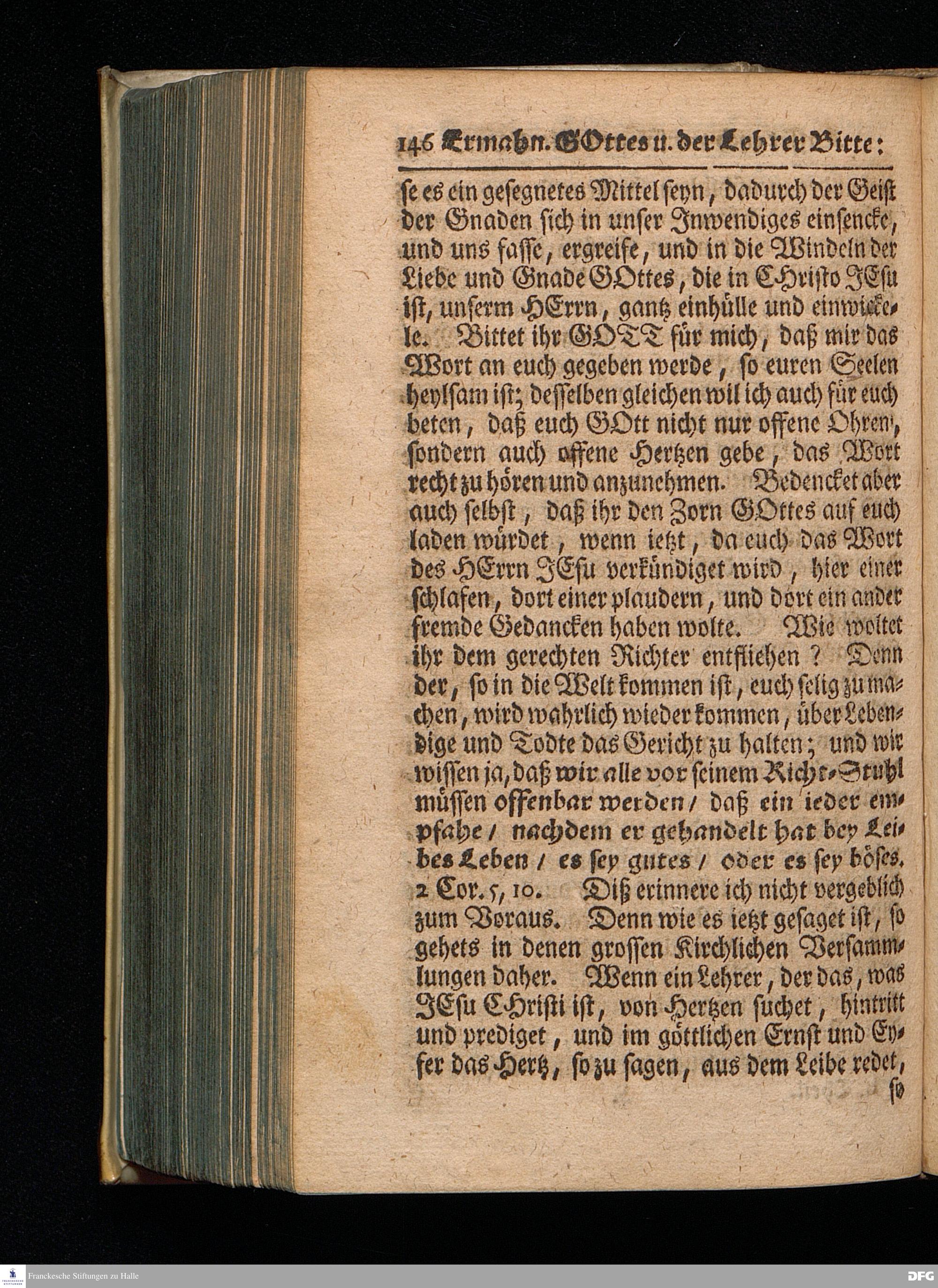 August Hermann Franckens / S.Theol.Prof.& Past. zu S.Ulrich, und des Gymnasii Scholarchæ, Kurtze Sonn= und Fest=Tags=Predigten / Darinnen Vornemlich zum wahren / lebendigen / Kraft=vollen und in guten Früchten sich beweisenden Glauben, die nöthige Aufweckung und Anweisung gegeben wird. Die andere EDITION, mit einer neuen Vorrede und einem Register versehen. HALLE, in Verlegung des Wäysen=Hause MDCCXVIII.