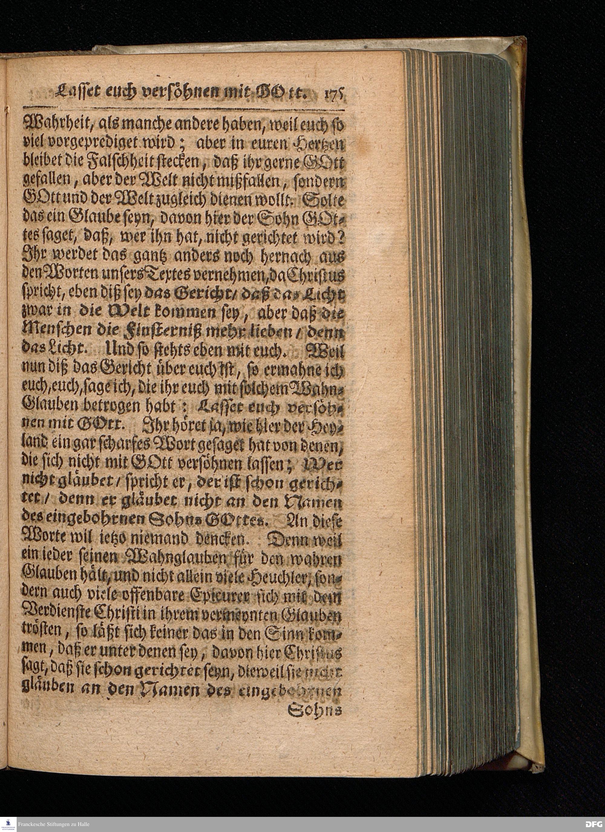 August Hermann Franckens / S.Theol.Prof.& Past. zu S.Ulrich, und des Gymnasii Scholarchæ, Kurtze Sonn= und Fest=Tags=Predigten / Darinnen Vornemlich zum wahren / lebendigen / Kraft=vollen und in guten Früchten sich beweisenden Glauben, die nöthige Aufweckung und Anweisung gegeben wird. Die andere EDITION, mit einer neuen Vorrede und einem Register versehen. HALLE, in Verlegung des Wäysen=Hause MDCCXVIII.
