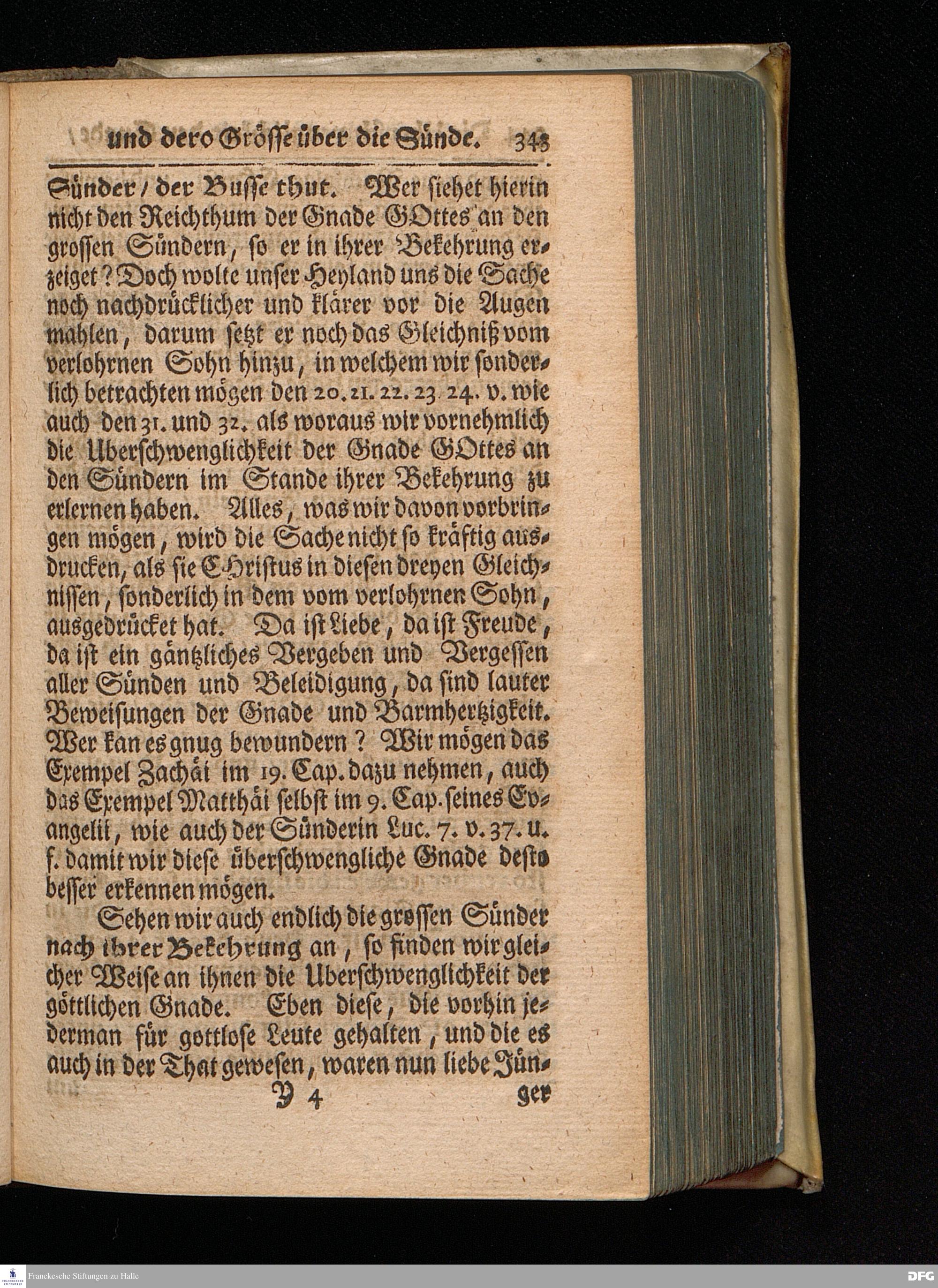 August Hermann Franckens / S.Theol.Prof.& Past. zu S.Ulrich, und des Gymnasii Scholarchæ, Kurtze Sonn= und Fest=Tags=Predigten / Darinnen Vornemlich zum wahren / lebendigen / Kraft=vollen und in guten Früchten sich beweisenden Glauben, die nöthige Aufweckung und Anweisung gegeben wird. Die andere EDITION, mit einer neuen Vorrede und einem Register versehen. HALLE, in Verlegung des Wäysen=Hause MDCCXVIII.