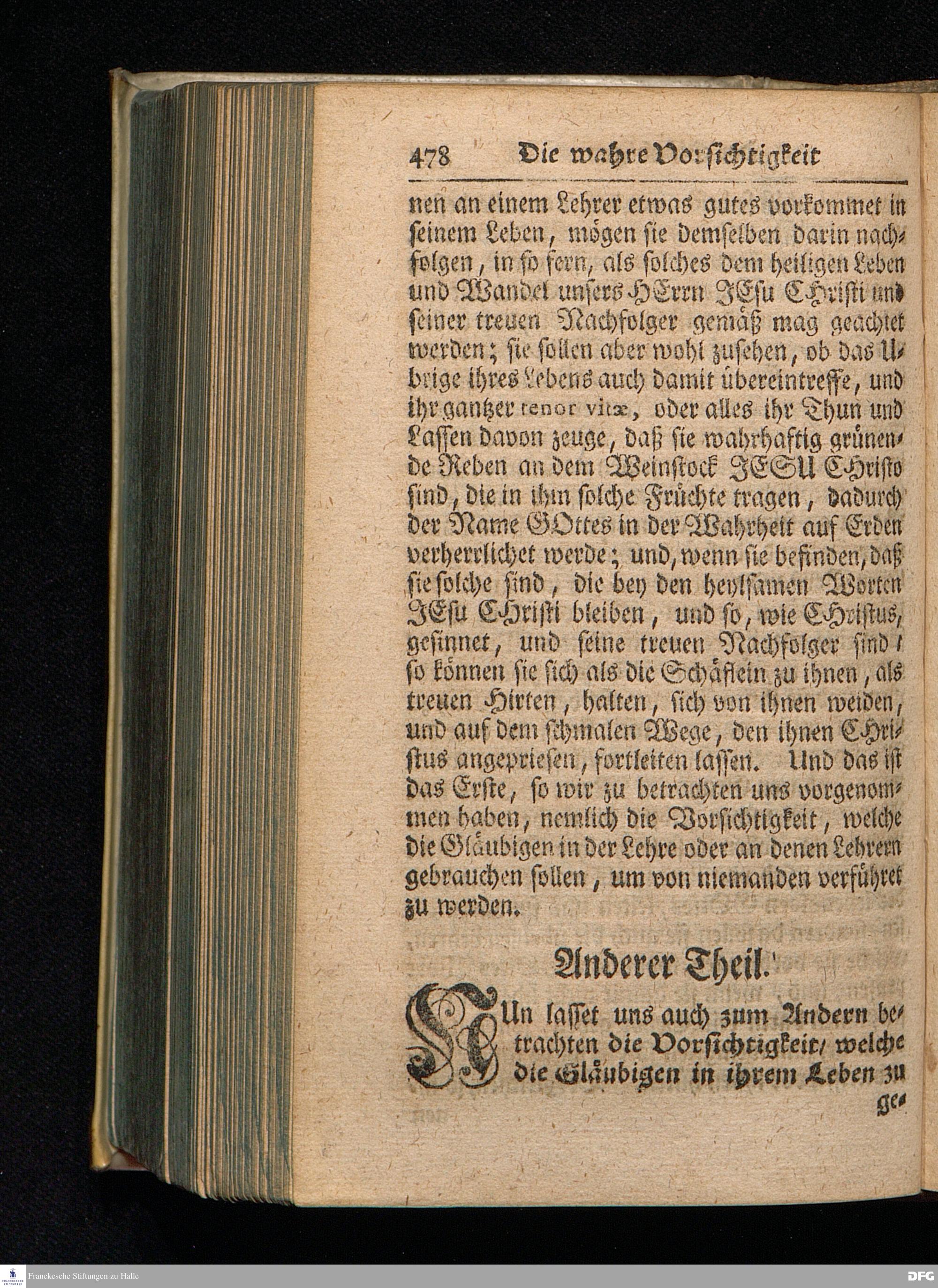 August Hermann Franckens / S.Theol.Prof.& Past. zu S.Ulrich, und des Gymnasii Scholarchæ, Kurtze Sonn= und Fest=Tags=Predigten / Darinnen Vornemlich zum wahren / lebendigen / Kraft=vollen und in guten Früchten sich beweisenden Glauben, die nöthige Aufweckung und Anweisung gegeben wird. Die andere EDITION, mit einer neuen Vorrede und einem Register versehen. HALLE, in Verlegung des Wäysen=Hause MDCCXVIII.