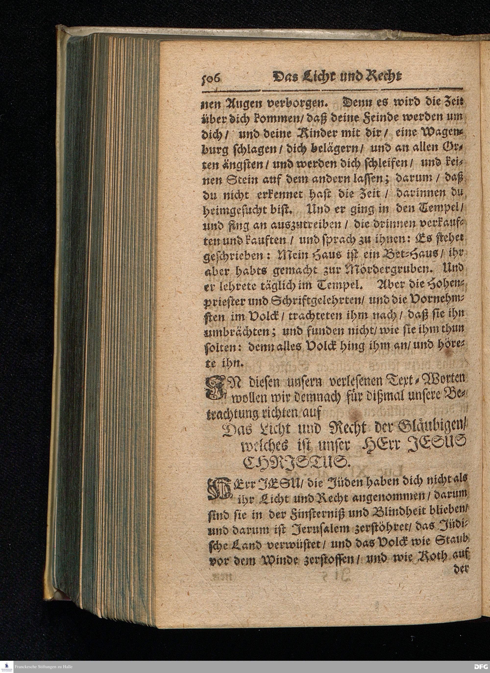August Hermann Franckens / S.Theol.Prof.& Past. zu S.Ulrich, und des Gymnasii Scholarchæ, Kurtze Sonn= und Fest=Tags=Predigten / Darinnen Vornemlich zum wahren / lebendigen / Kraft=vollen und in guten Früchten sich beweisenden Glauben, die nöthige Aufweckung und Anweisung gegeben wird. Die andere EDITION, mit einer neuen Vorrede und einem Register versehen. HALLE, in Verlegung des Wäysen=Hause MDCCXVIII.