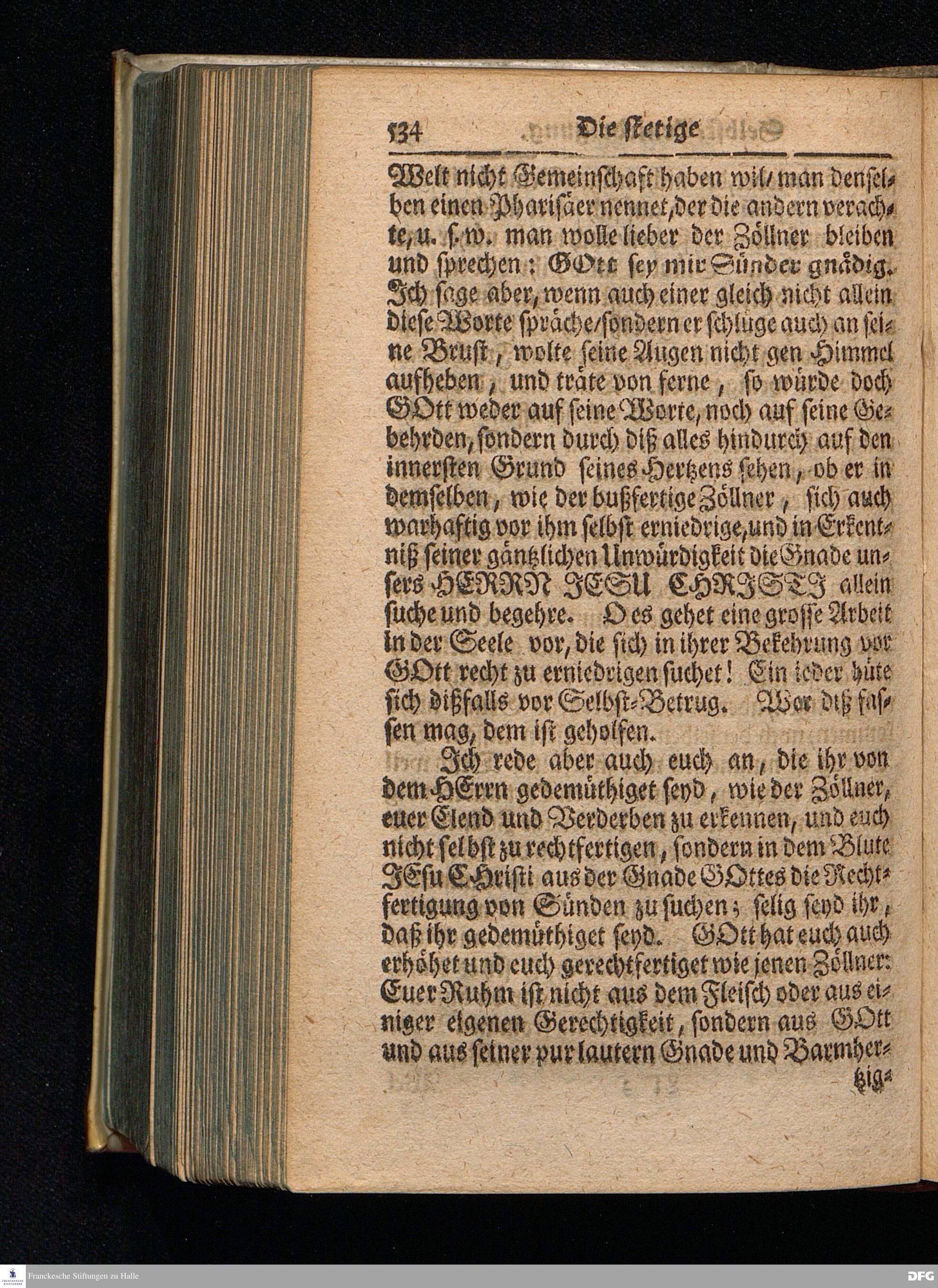 August Hermann Franckens / S.Theol.Prof.& Past. zu S.Ulrich, und des Gymnasii Scholarchæ, Kurtze Sonn= und Fest=Tags=Predigten / Darinnen Vornemlich zum wahren / lebendigen / Kraft=vollen und in guten Früchten sich beweisenden Glauben, die nöthige Aufweckung und Anweisung gegeben wird. Die andere EDITION, mit einer neuen Vorrede und einem Register versehen. HALLE, in Verlegung des Wäysen=Hause MDCCXVIII.