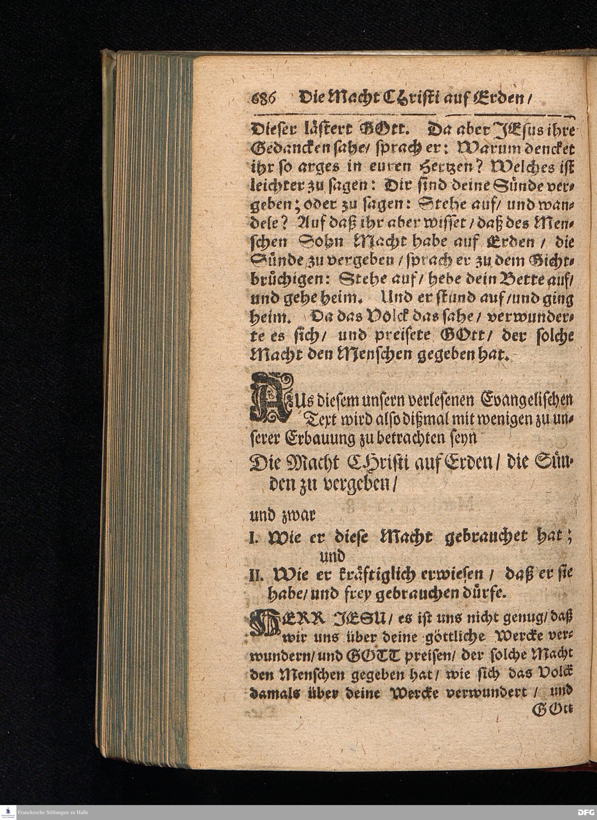 August Hermann Franckens / S.Theol.Prof.& Past. zu S.Ulrich, und des Gymnasii Scholarchæ, Kurtze Sonn= und Fest=Tags=Predigten / Darinnen Vornemlich zum wahren / lebendigen / Kraft=vollen und in guten Früchten sich beweisenden Glauben, die nöthige Aufweckung und Anweisung gegeben wird. Die andere EDITION, mit einer neuen Vorrede und einem Register versehen. HALLE, in Verlegung des Wäysen=Hause MDCCXVIII.