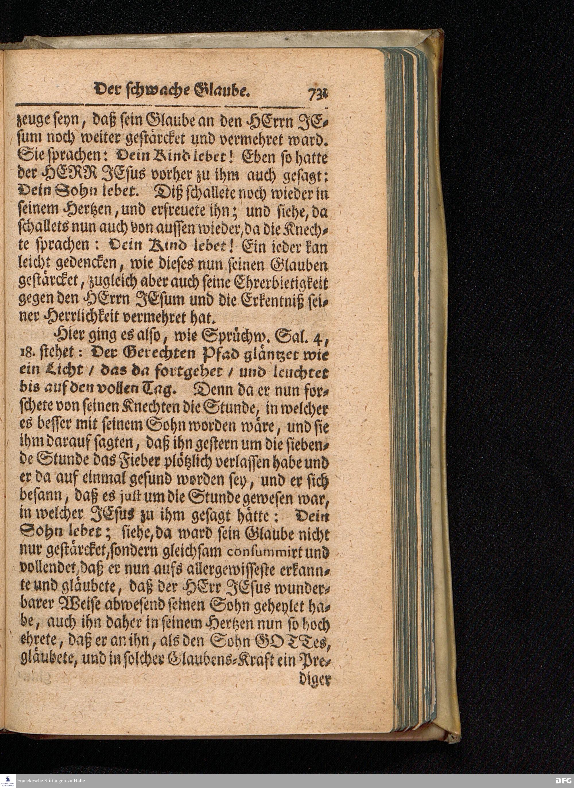 August Hermann Franckens / S.Theol.Prof.& Past. zu S.Ulrich, und des Gymnasii Scholarchæ, Kurtze Sonn= und Fest=Tags=Predigten / Darinnen Vornemlich zum wahren / lebendigen / Kraft=vollen und in guten Früchten sich beweisenden Glauben, die nöthige Aufweckung und Anweisung gegeben wird. Die andere EDITION, mit einer neuen Vorrede und einem Register versehen. HALLE, in Verlegung des Wäysen=Hause MDCCXVIII.