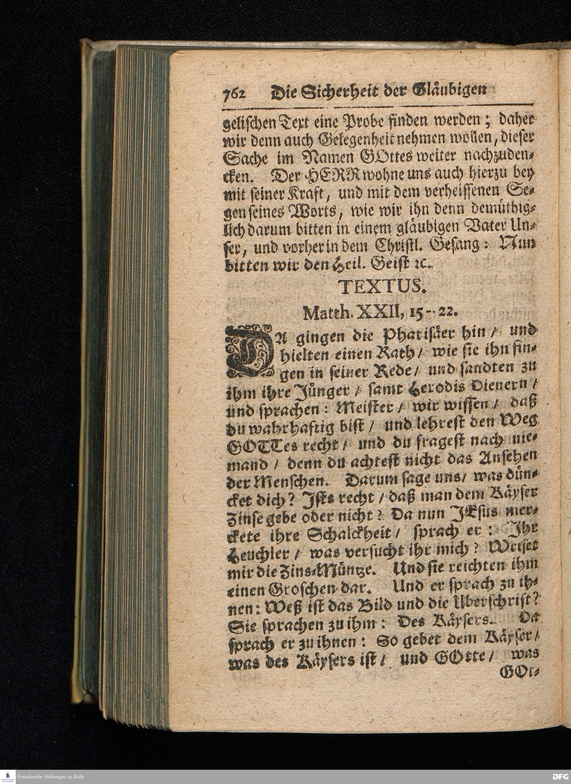 August Hermann Franckens / S.Theol.Prof.& Past. zu S.Ulrich, und des Gymnasii Scholarchæ, Kurtze Sonn= und Fest=Tags=Predigten / Darinnen Vornemlich zum wahren / lebendigen / Kraft=vollen und in guten Früchten sich beweisenden Glauben, die nöthige Aufweckung und Anweisung gegeben wird. Die andere EDITION, mit einer neuen Vorrede und einem Register versehen. HALLE, in Verlegung des Wäysen=Hause MDCCXVIII.