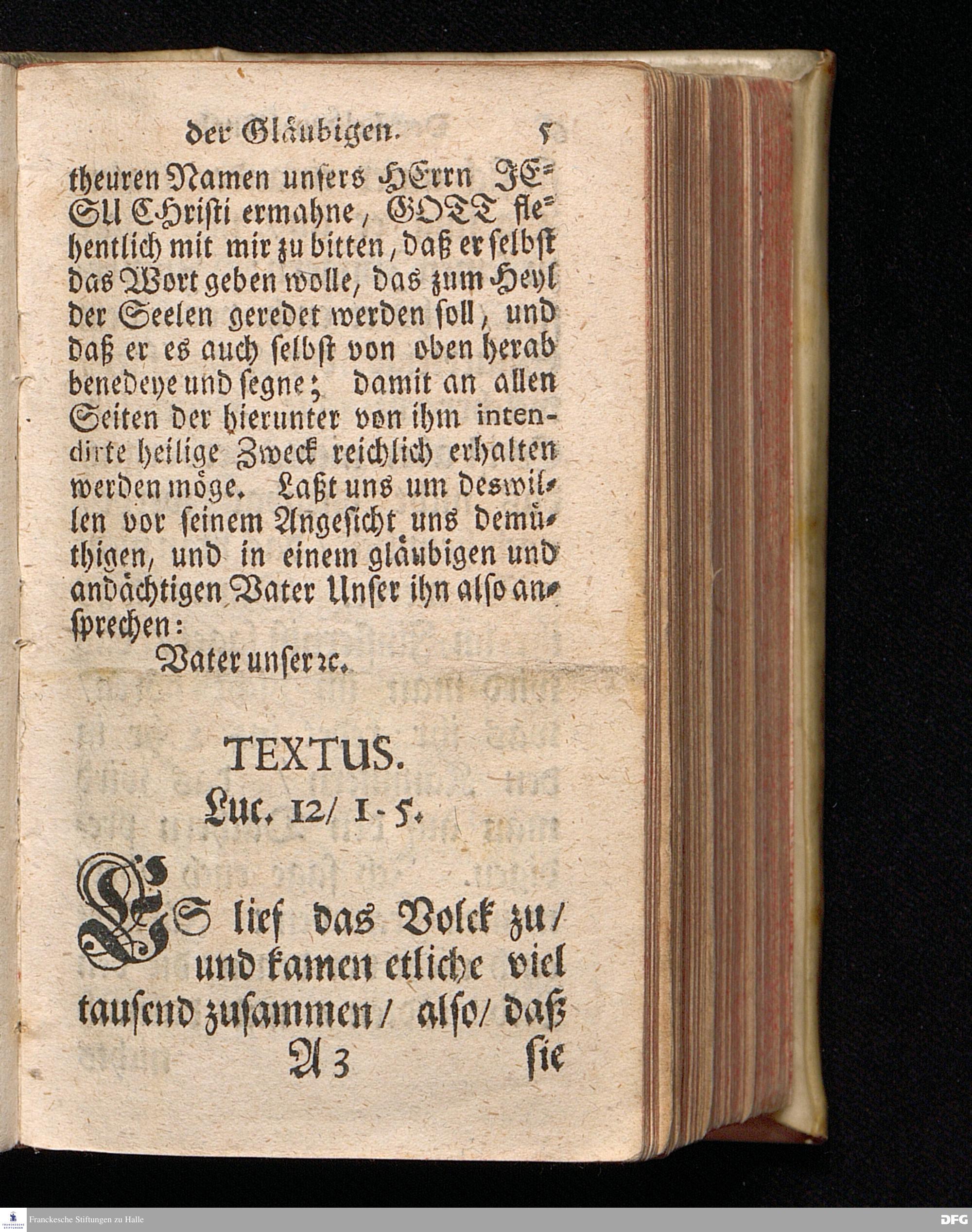 Der Helden=Muth der Gläubigen, In einer vor dem hier versammleten Hochfürstlichen Dessauischen Regiment, am Sonntag Jubilate 1720. gehaltenen Predigt / aus denen dazu vorgeschriebenen Text=Worten, Luc.XII,1--5. in der Schul=Kirche zu Halle vorgestellet von August Hermann Francken / S.Th.Prof.Past.Vlr.& Schol. Andere Auflage. HALLE, gedruckt im Wäysen=Hause. MDCCXXIII.