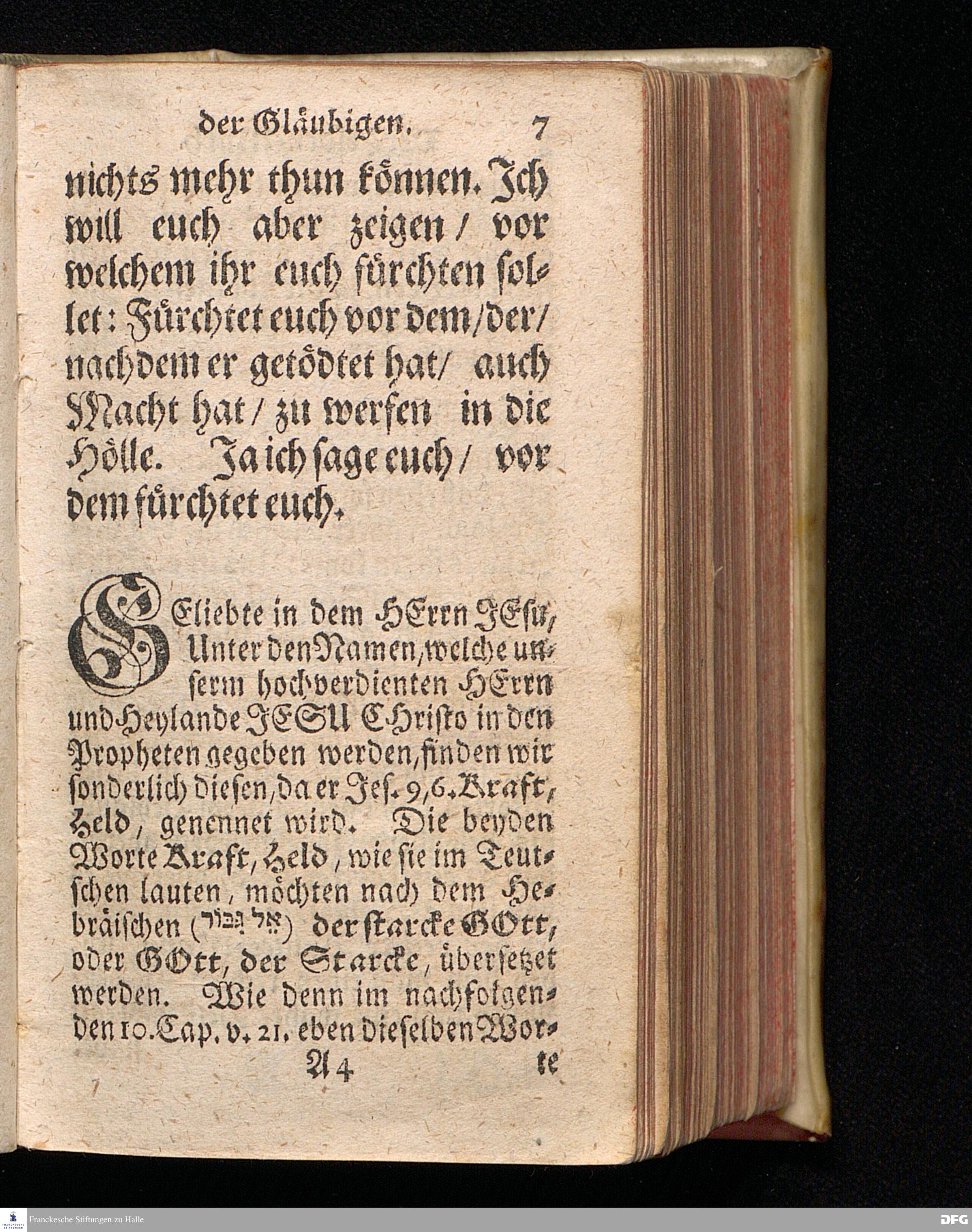 Der Helden=Muth der Gläubigen, In einer vor dem hier versammleten Hochfürstlichen Dessauischen Regiment, am Sonntag Jubilate 1720. gehaltenen Predigt / aus denen dazu vorgeschriebenen Text=Worten, Luc.XII,1--5. in der Schul=Kirche zu Halle vorgestellet von August Hermann Francken / S.Th.Prof.Past.Vlr.& Schol. Andere Auflage. HALLE, gedruckt im Wäysen=Hause. MDCCXXIII.