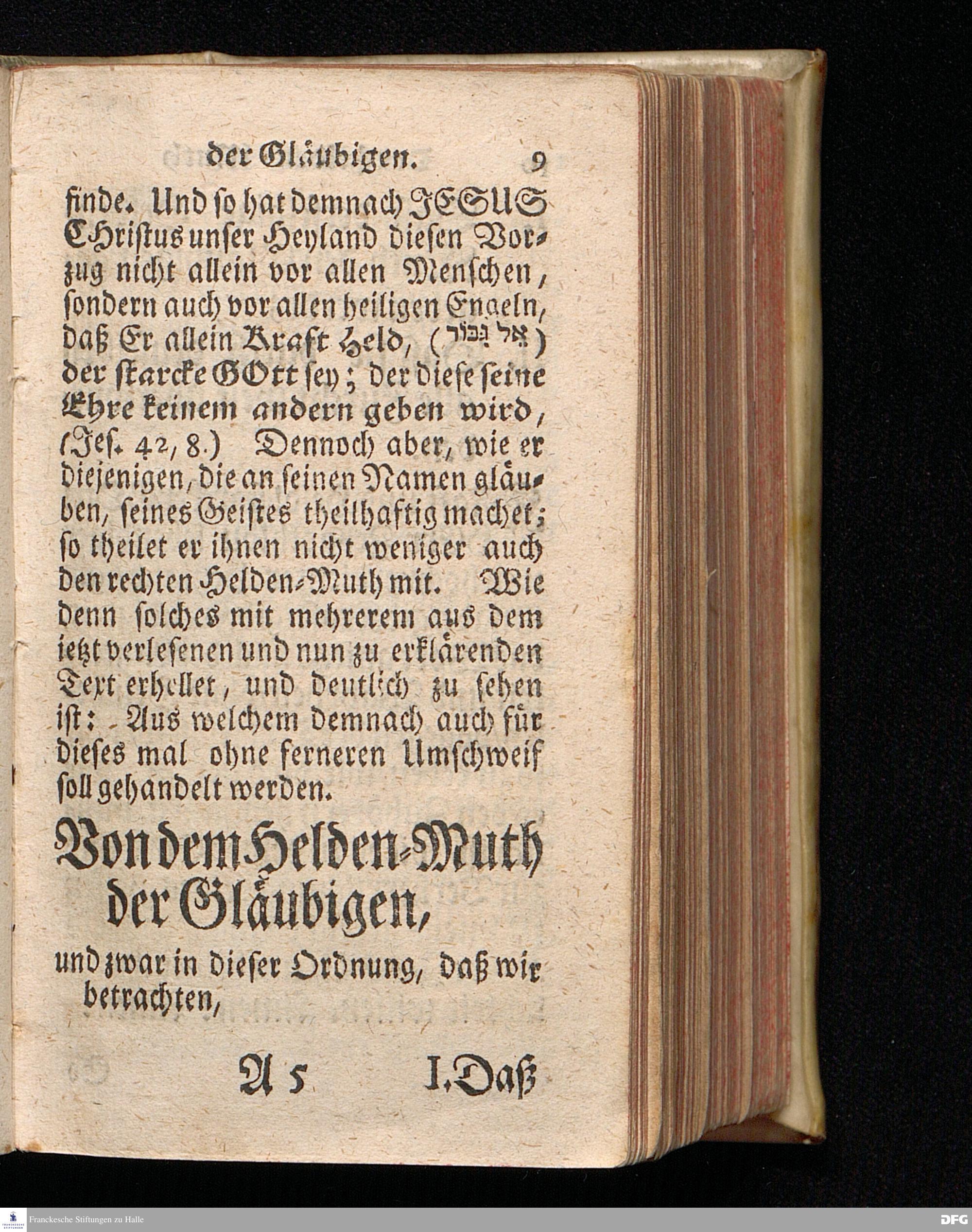 Der Helden=Muth der Gläubigen, In einer vor dem hier versammleten Hochfürstlichen Dessauischen Regiment, am Sonntag Jubilate 1720. gehaltenen Predigt / aus denen dazu vorgeschriebenen Text=Worten, Luc.XII,1--5. in der Schul=Kirche zu Halle vorgestellet von August Hermann Francken / S.Th.Prof.Past.Vlr.& Schol. Andere Auflage. HALLE, gedruckt im Wäysen=Hause. MDCCXXIII.
