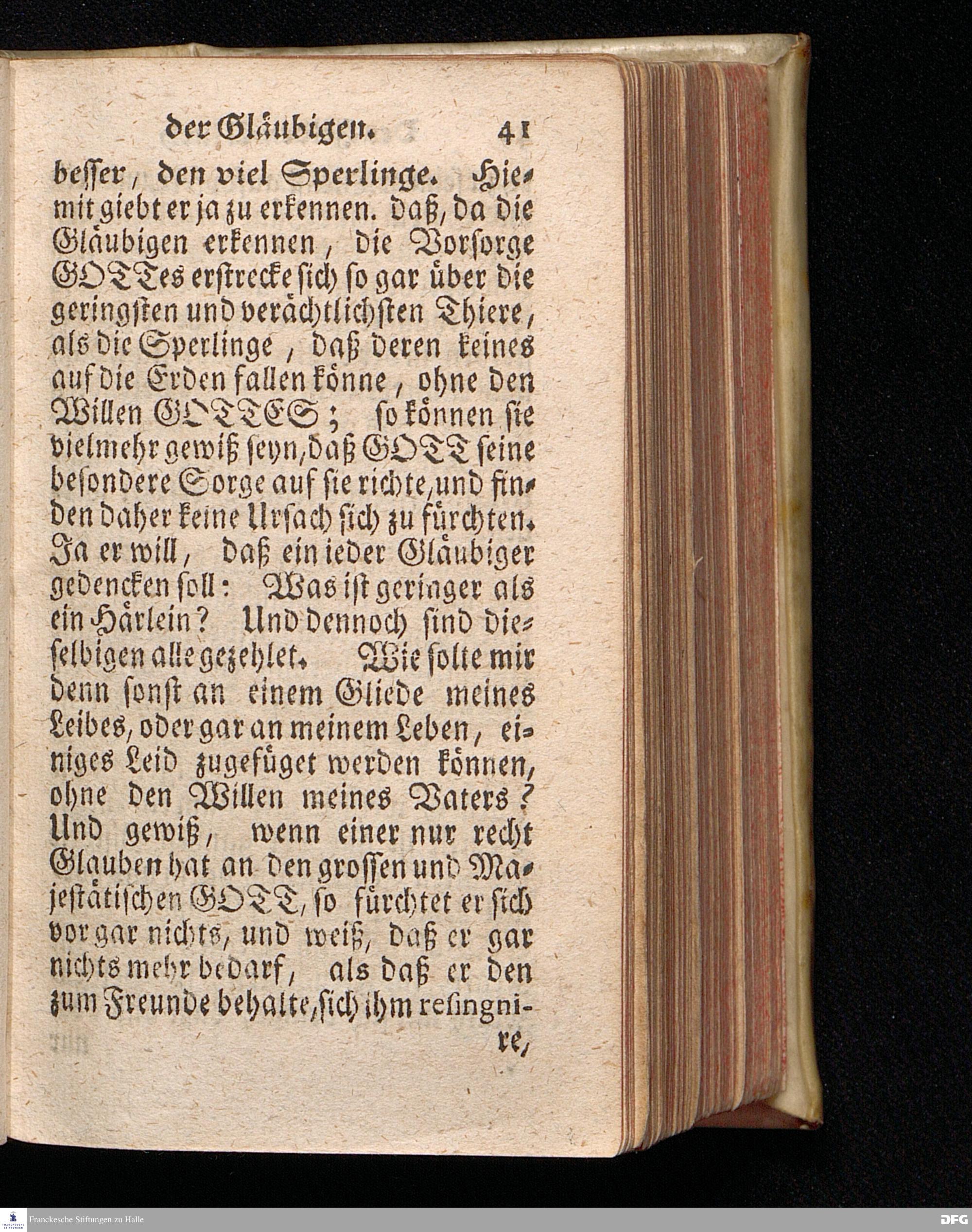Der Helden=Muth der Gläubigen, In einer vor dem hier versammleten Hochfürstlichen Dessauischen Regiment, am Sonntag Jubilate 1720. gehaltenen Predigt / aus denen dazu vorgeschriebenen Text=Worten, Luc.XII,1--5. in der Schul=Kirche zu Halle vorgestellet von August Hermann Francken / S.Th.Prof.Past.Vlr.& Schol. Andere Auflage. HALLE, gedruckt im Wäysen=Hause. MDCCXXIII.