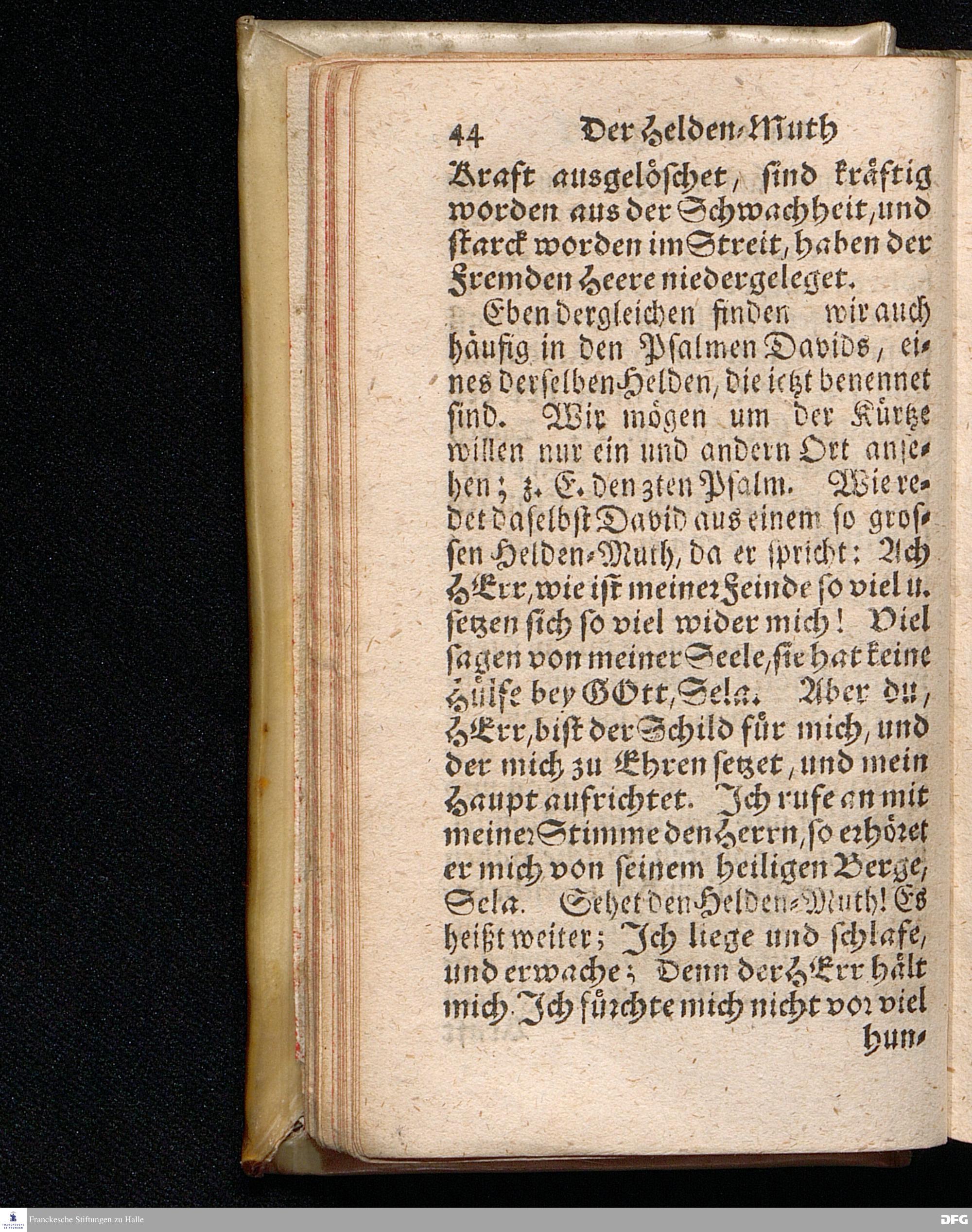 Der Helden=Muth der Gläubigen, In einer vor dem hier versammleten Hochfürstlichen Dessauischen Regiment, am Sonntag Jubilate 1720. gehaltenen Predigt / aus denen dazu vorgeschriebenen Text=Worten, Luc.XII,1--5. in der Schul=Kirche zu Halle vorgestellet von August Hermann Francken / S.Th.Prof.Past.Vlr.& Schol. Andere Auflage. HALLE, gedruckt im Wäysen=Hause. MDCCXXIII.