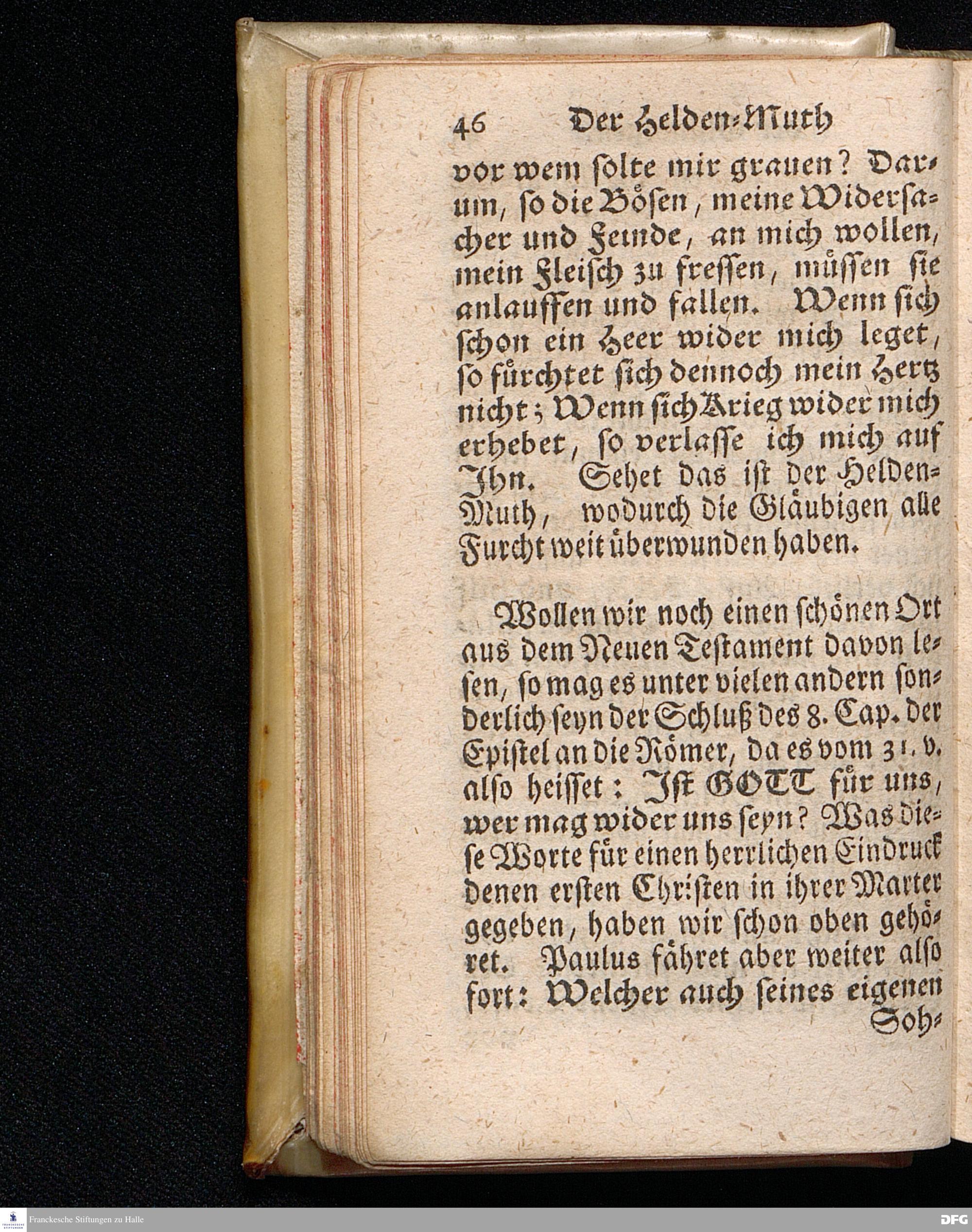 Der Helden=Muth der Gläubigen, In einer vor dem hier versammleten Hochfürstlichen Dessauischen Regiment, am Sonntag Jubilate 1720. gehaltenen Predigt / aus denen dazu vorgeschriebenen Text=Worten, Luc.XII,1--5. in der Schul=Kirche zu Halle vorgestellet von August Hermann Francken / S.Th.Prof.Past.Vlr.& Schol. Andere Auflage. HALLE, gedruckt im Wäysen=Hause. MDCCXXIII.