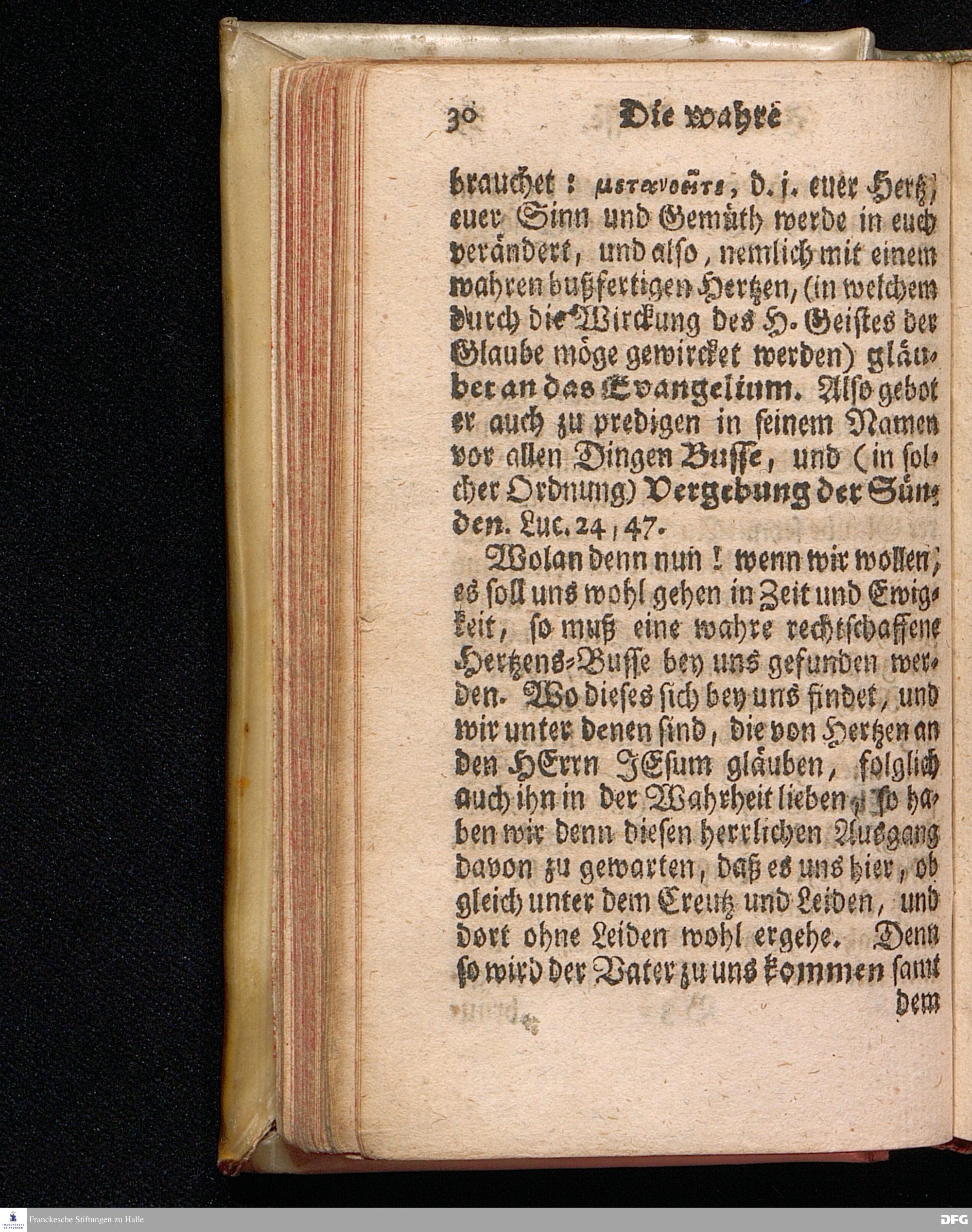 Die wahre Hertzens=Busse Aus den Worten des HErrn Im 5.Buch Mos.V, 29. [Bibelzitat.] Am Buß=Tage den 14.Jun.1713. In der St.Georgen=Kirche zu Glaucha vorgestellet von August Hermann Francken / S.Th.Prof.Past.zu St.Ulrich, und des Gymnasii Scholarcha. Andere Auflage.[!] Der Jugend in den Schulen des Wäysenhauses, nach gehaltenem Examine, den 19.Aug.gedachten Jahres ausgetheilet. HALLE, In Verlegung des Wäysenhauses, 1728.