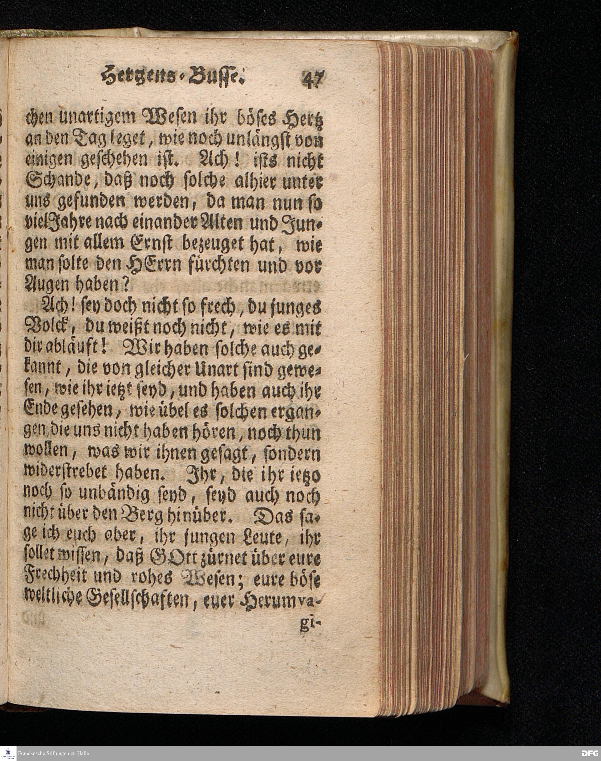 Die wahre Hertzens=Busse Aus den Worten des HErrn Im 5.Buch Mos.V, 29. [Bibelzitat.] Am Buß=Tage den 14.Jun.1713. In der St.Georgen=Kirche zu Glaucha vorgestellet von August Hermann Francken / S.Th.Prof.Past.zu St.Ulrich, und des Gymnasii Scholarcha. Andere Auflage.[!] Der Jugend in den Schulen des Wäysenhauses, nach gehaltenem Examine, den 19.Aug.gedachten Jahres ausgetheilet. HALLE, In Verlegung des Wäysenhauses, 1728.