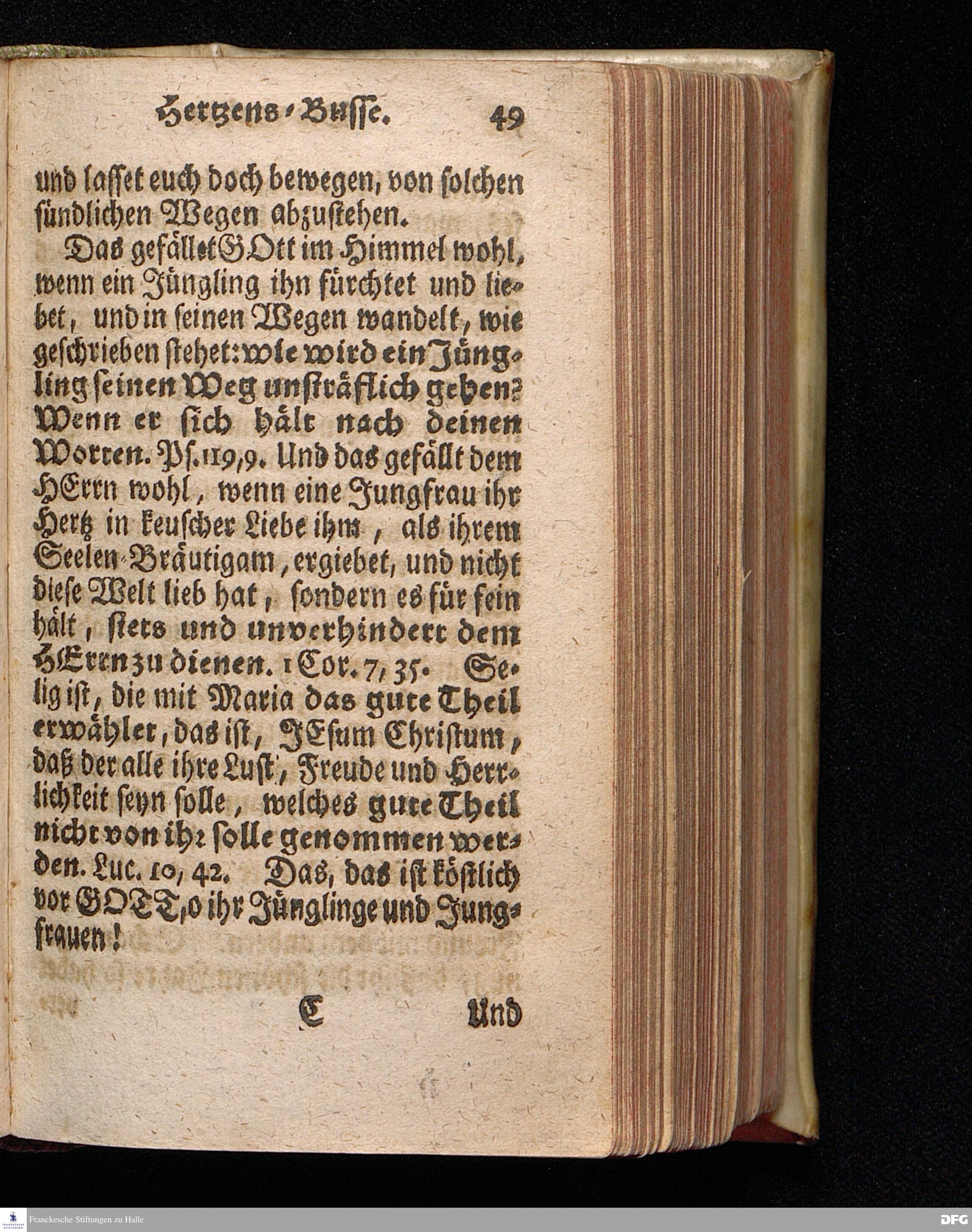 Die wahre Hertzens=Busse Aus den Worten des HErrn Im 5.Buch Mos.V, 29. [Bibelzitat.] Am Buß=Tage den 14.Jun.1713. In der St.Georgen=Kirche zu Glaucha vorgestellet von August Hermann Francken / S.Th.Prof.Past.zu St.Ulrich, und des Gymnasii Scholarcha. Andere Auflage.[!] Der Jugend in den Schulen des Wäysenhauses, nach gehaltenem Examine, den 19.Aug.gedachten Jahres ausgetheilet. HALLE, In Verlegung des Wäysenhauses, 1728.