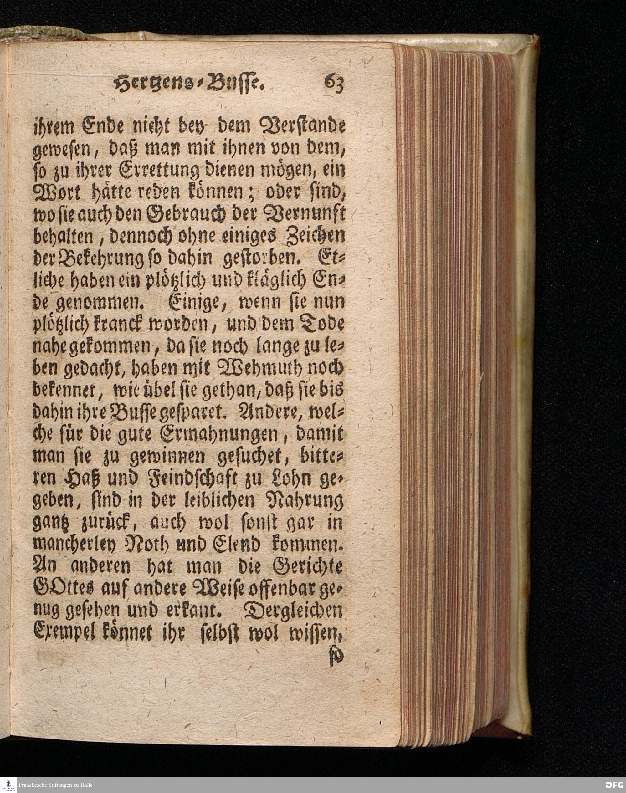 Die wahre Hertzens=Busse Aus den Worten des HErrn Im 5.Buch Mos.V, 29. [Bibelzitat.] Am Buß=Tage den 14.Jun.1713. In der St.Georgen=Kirche zu Glaucha vorgestellet von August Hermann Francken / S.Th.Prof.Past.zu St.Ulrich, und des Gymnasii Scholarcha. Andere Auflage.[!] Der Jugend in den Schulen des Wäysenhauses, nach gehaltenem Examine, den 19.Aug.gedachten Jahres ausgetheilet. HALLE, In Verlegung des Wäysenhauses, 1728.