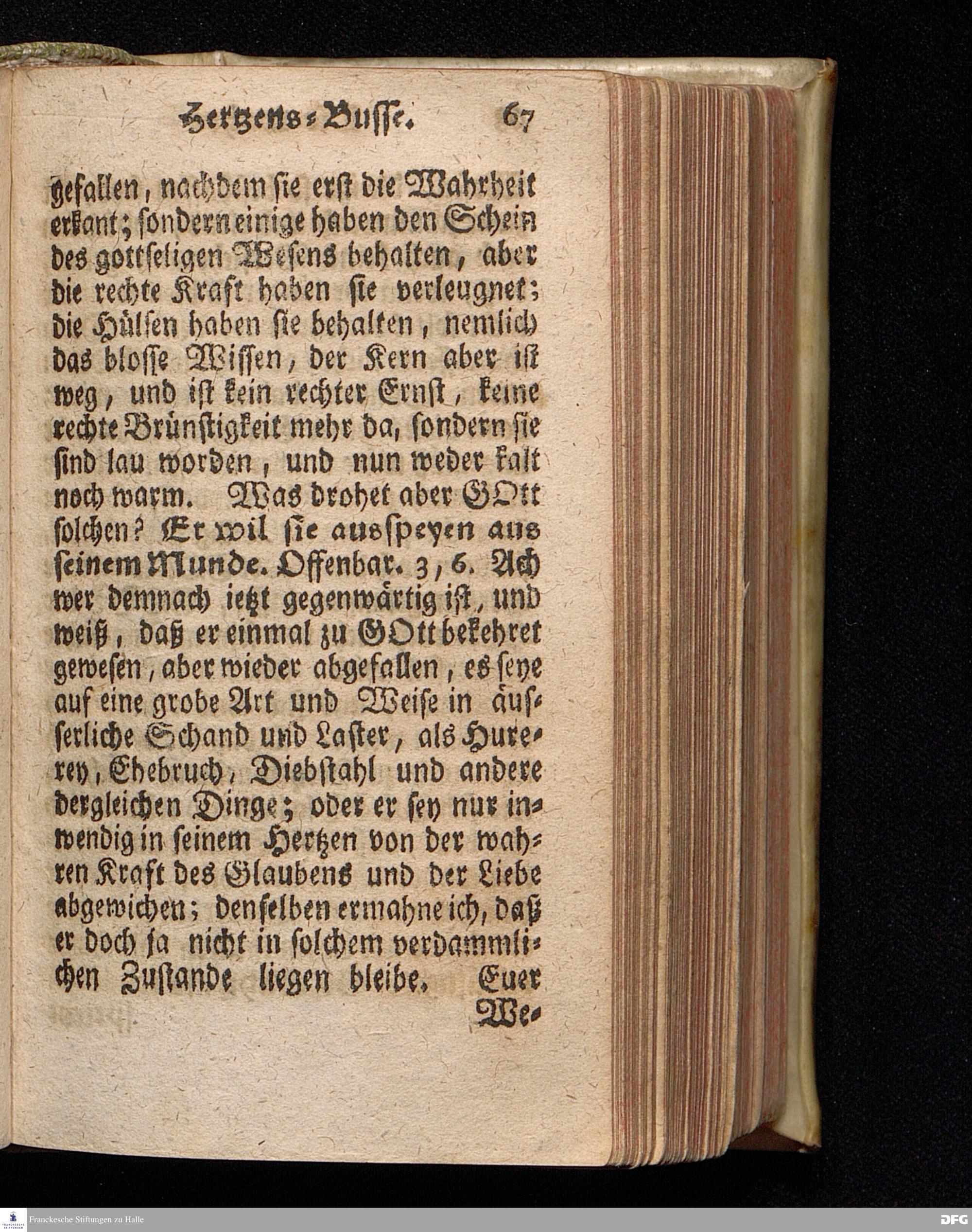 Die wahre Hertzens=Busse Aus den Worten des HErrn Im 5.Buch Mos.V, 29. [Bibelzitat.] Am Buß=Tage den 14.Jun.1713. In der St.Georgen=Kirche zu Glaucha vorgestellet von August Hermann Francken / S.Th.Prof.Past.zu St.Ulrich, und des Gymnasii Scholarcha. Andere Auflage.[!] Der Jugend in den Schulen des Wäysenhauses, nach gehaltenem Examine, den 19.Aug.gedachten Jahres ausgetheilet. HALLE, In Verlegung des Wäysenhauses, 1728.