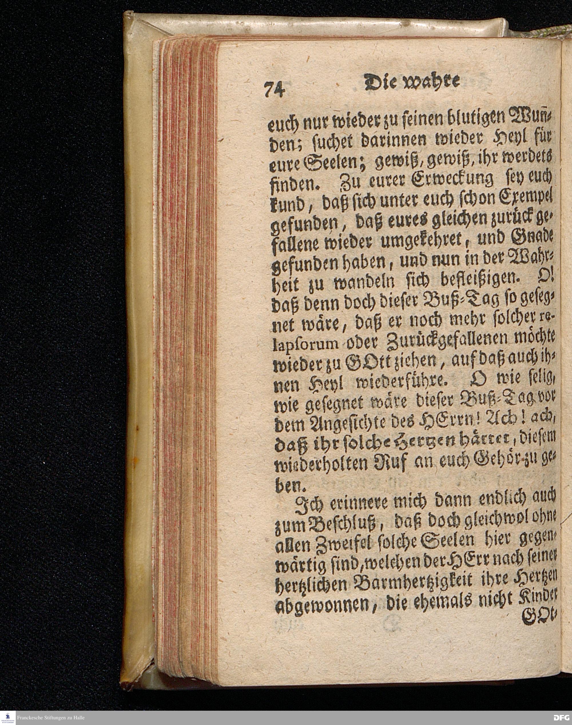 Die wahre Hertzens=Busse Aus den Worten des HErrn Im 5.Buch Mos.V, 29. [Bibelzitat.] Am Buß=Tage den 14.Jun.1713. In der St.Georgen=Kirche zu Glaucha vorgestellet von August Hermann Francken / S.Th.Prof.Past.zu St.Ulrich, und des Gymnasii Scholarcha. Andere Auflage.[!] Der Jugend in den Schulen des Wäysenhauses, nach gehaltenem Examine, den 19.Aug.gedachten Jahres ausgetheilet. HALLE, In Verlegung des Wäysenhauses, 1728.