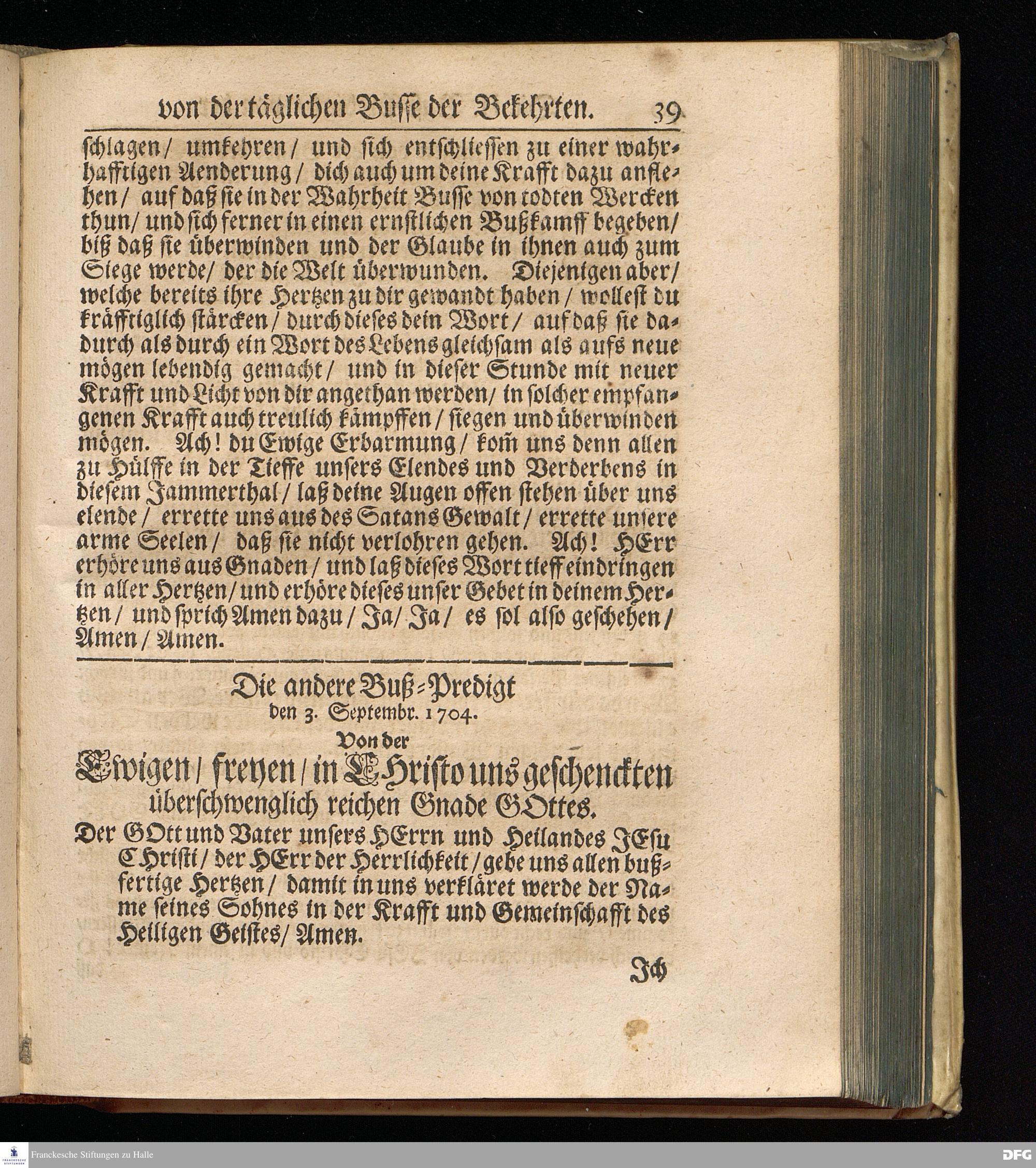 Von der Ewigen / freyen / in CHristo uns geschenckten überschwenglichen Gnade GOttes. Die II.Buß=Predigt, den 3.Septembr.1704.
