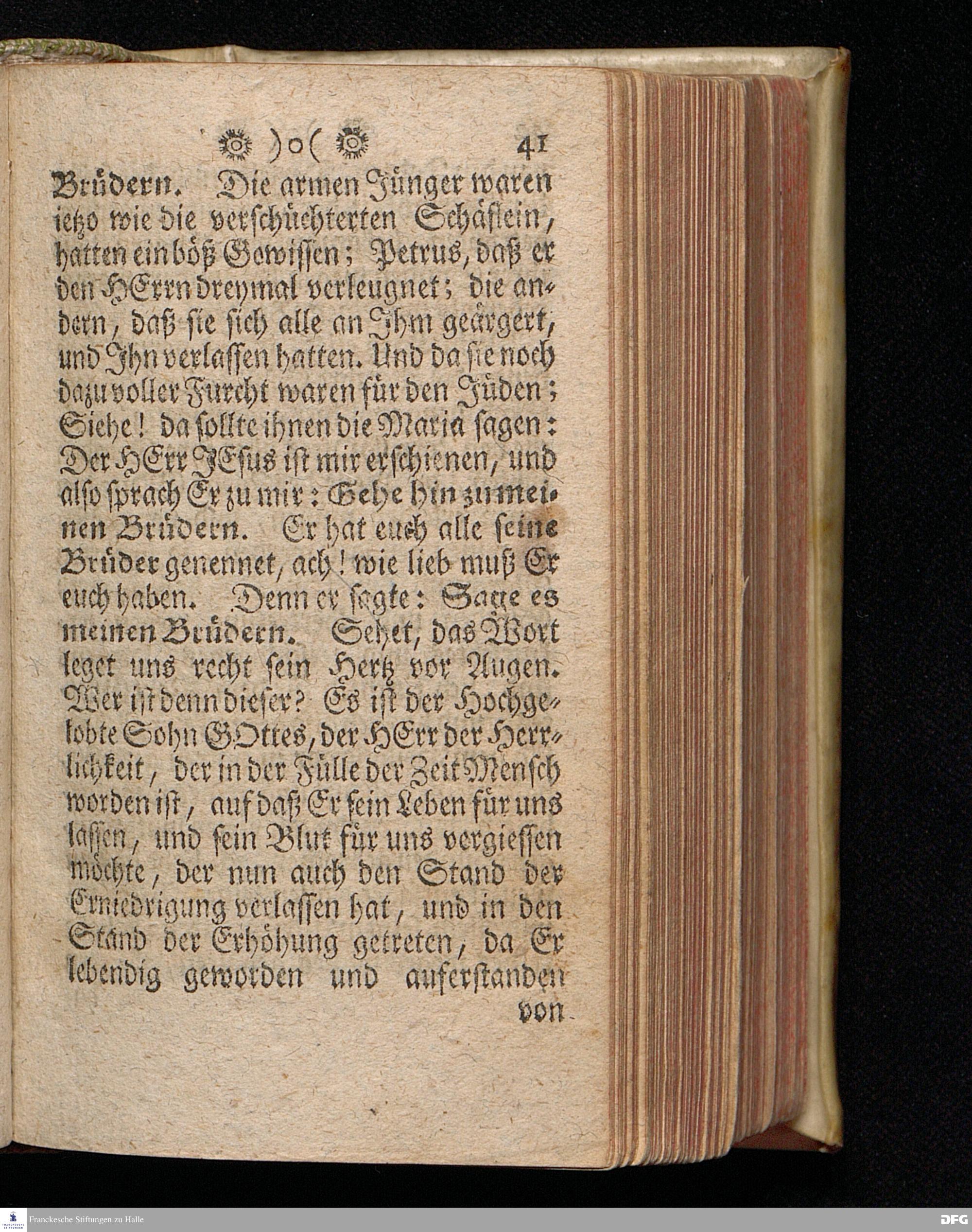 Das Hertz des auferstandenen JESU, vorgestellet in einer Am andern Oster=Tage ANNO 1707. In der Schul=Kirchen zu Halle, über Joh.XX, 17. gehaltenen und nach dem Examine der Schul=Jugend in dem Wäysen=Hause den 18 May Ausgetheilten Predigt, von August Hermann Francken, S.Th.Prof.Ord.Past.Vlric.und Scholarcha. Andere Auflage. HALLE, in Verlegung des Wäysen=Hauses, MDCCXXIX.
