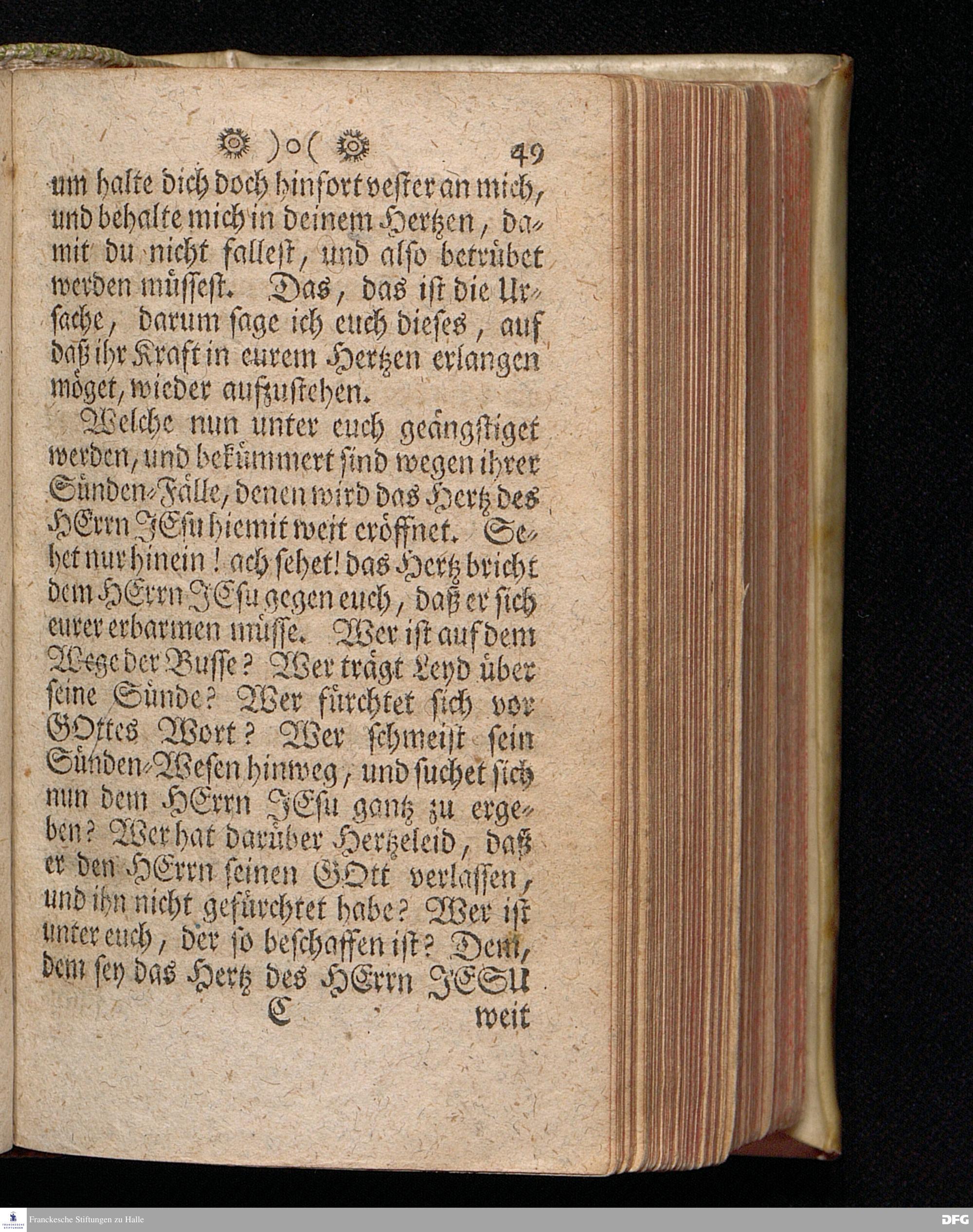 Das Hertz des auferstandenen JESU, vorgestellet in einer Am andern Oster=Tage ANNO 1707. In der Schul=Kirchen zu Halle, über Joh.XX, 17. gehaltenen und nach dem Examine der Schul=Jugend in dem Wäysen=Hause den 18 May Ausgetheilten Predigt, von August Hermann Francken, S.Th.Prof.Ord.Past.Vlric.und Scholarcha. Andere Auflage. HALLE, in Verlegung des Wäysen=Hauses, MDCCXXIX.