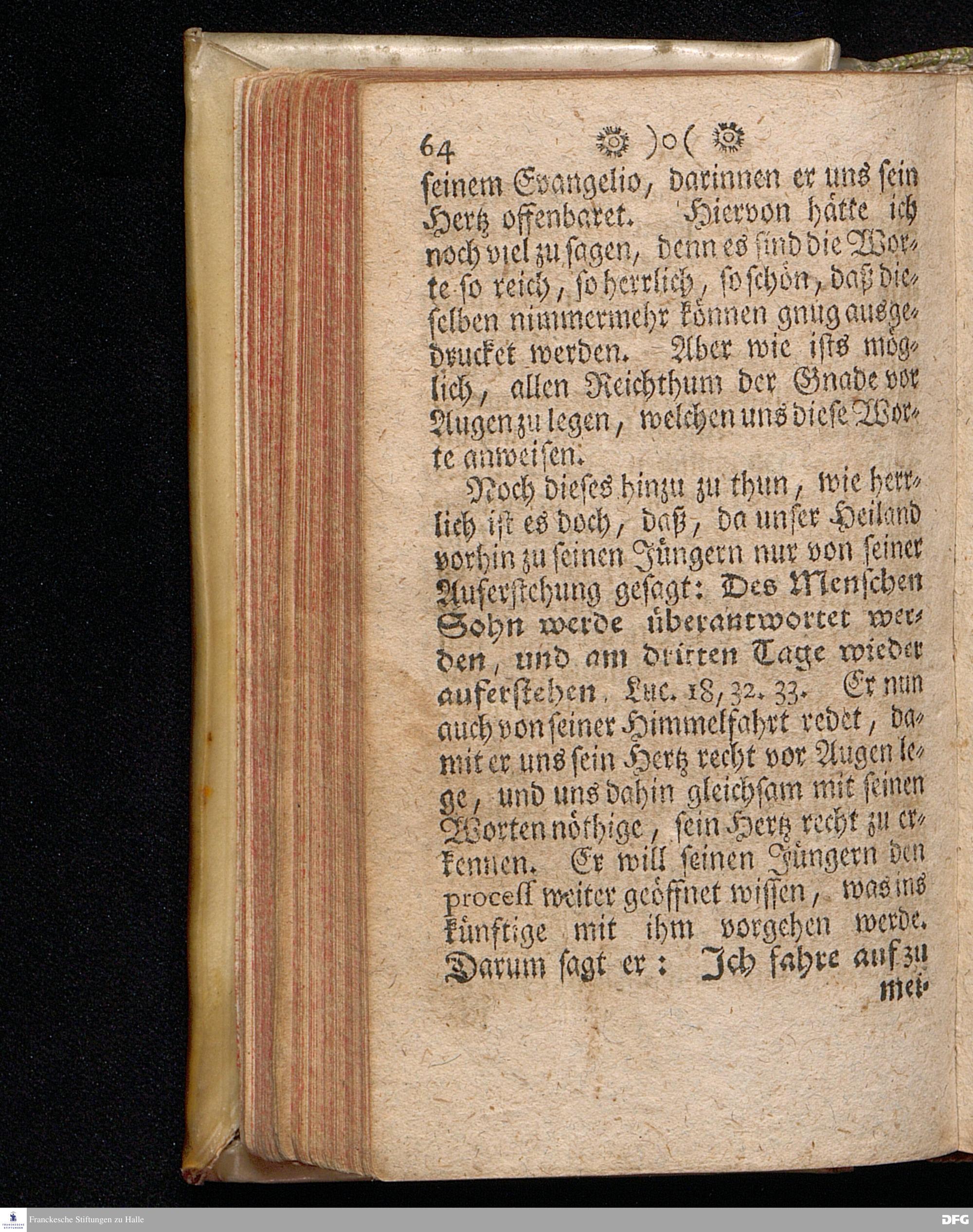 Das Hertz des auferstandenen JESU, vorgestellet in einer Am andern Oster=Tage ANNO 1707. In der Schul=Kirchen zu Halle, über Joh.XX, 17. gehaltenen und nach dem Examine der Schul=Jugend in dem Wäysen=Hause den 18 May Ausgetheilten Predigt, von August Hermann Francken, S.Th.Prof.Ord.Past.Vlric.und Scholarcha. Andere Auflage. HALLE, in Verlegung des Wäysen=Hauses, MDCCXXIX.