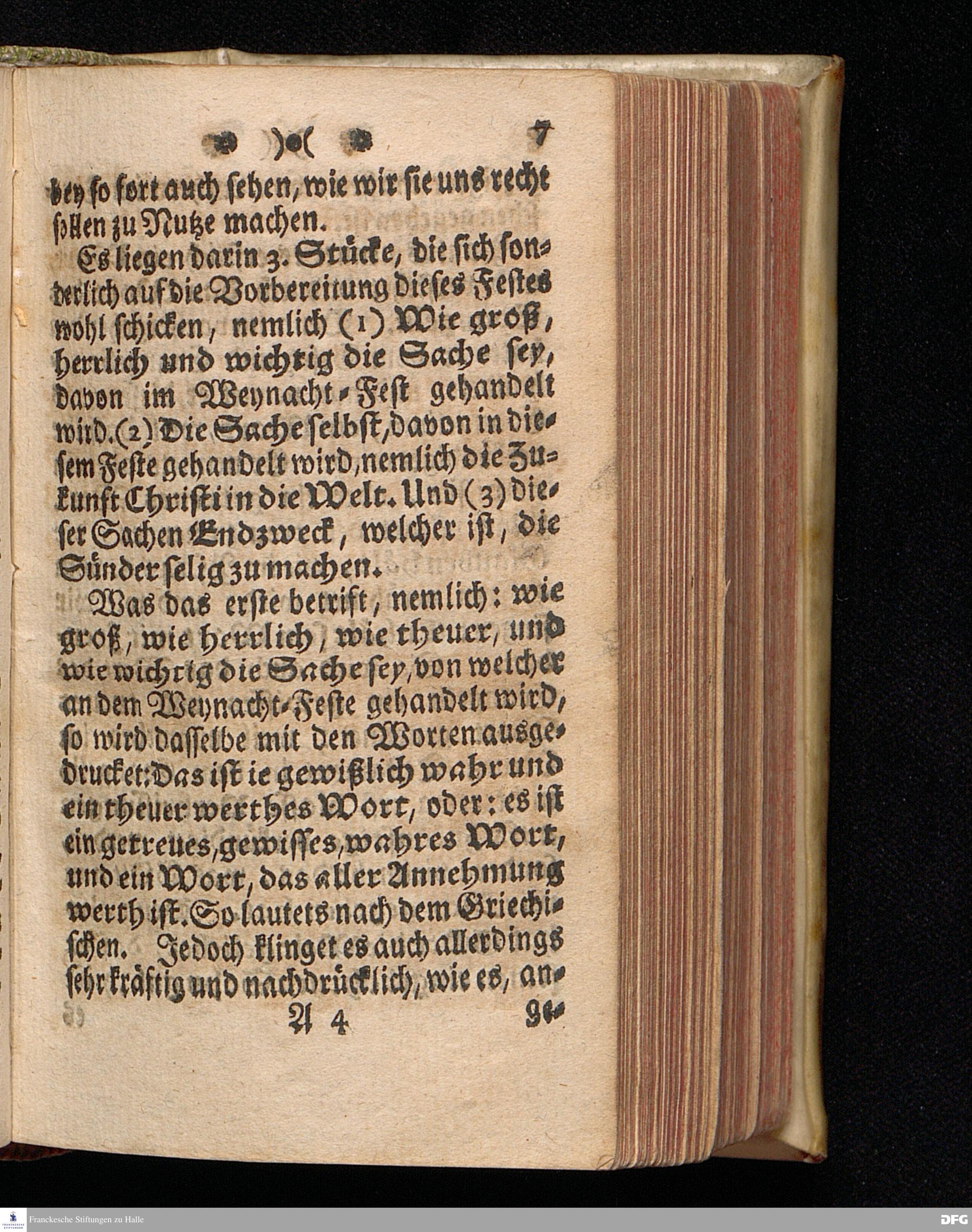 Der Kern=Spruch PAULI, I.Tim.1, 15. Das ist ie gewißlich wahr, und ein theuer werthes Wort, daß Christus JEsus kommen ist in die Welt, die Sünder selig zu machen; ausgeleget, Und zur Vorbereitung aufs Heil. Weynacht=-Fest / mithin zur Aufforderung aller / auch der grösten Sünder / zu ihrer wahren Bekehrung / Wie auch zur allgemeinen Erbauung angewendet, und vorgetragen, Im Wäysenhause zu Glaucha an Halle, den 23.Decembr.1712. von August Hermann Francken / S.Th.Prof.Ord.Past.Vlric. und Schol. Dritte Auflage. HALLE, In Verlegung des Wäysenhauses, MDCCXXIX.