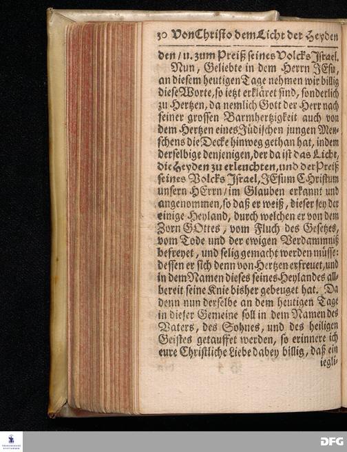 JEsus CHristus als das Licht der Heyden / und der Preiß Israels / Nach Anleitung des Evangel. Textes Luc.II, 22--32. Am Tage der Reinigung Mariä Anno 1714. auf Veranlassung einer damals angestelleten Jüden=Tauffe / In der St.Georgen=Kirche zu Glaucha an Halle vorgestellet / Von August Hermann Francken / S.Theol.Prof.und Past.Vlric. Andere Auflage. Der bey obgedachter Tauffe gehaltene Sermon und das Examen mit dem Täufling ist zugleich mit hieran gedrucket. HALLE, In Verlegung des Wäysen=Hauses. 1723