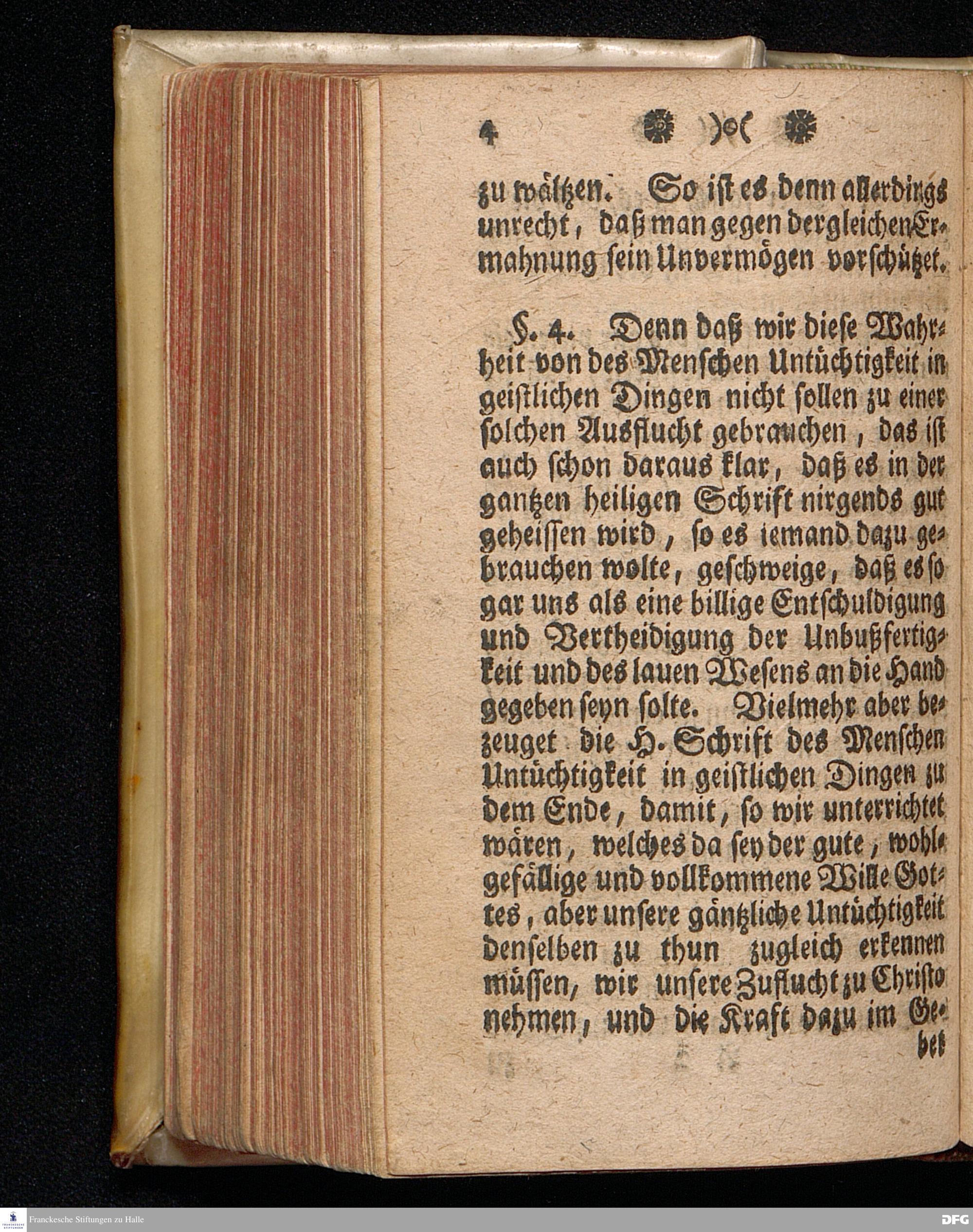 August Hermann Franckens / S.S.Theol.P.Ord.Past.Vlric.& Schol. Kurtzer Unterricht von der Möglichkeit der wahren Bekehrung zu GOtt und des thätigen Christenthums in Schriftmäßiger Beantwortung der gar gemeinen, aber nichtigen Ausflucht / So darin gesuchet wird, daß man ihme selbst nichts nehmen, noch aus eigenen Kräften sich bekehren oder frömmer werden könne. Revidirt und zum sechstenmal gedruckt. HALLE, in Verlegung des Wäysenhauses. 1728.