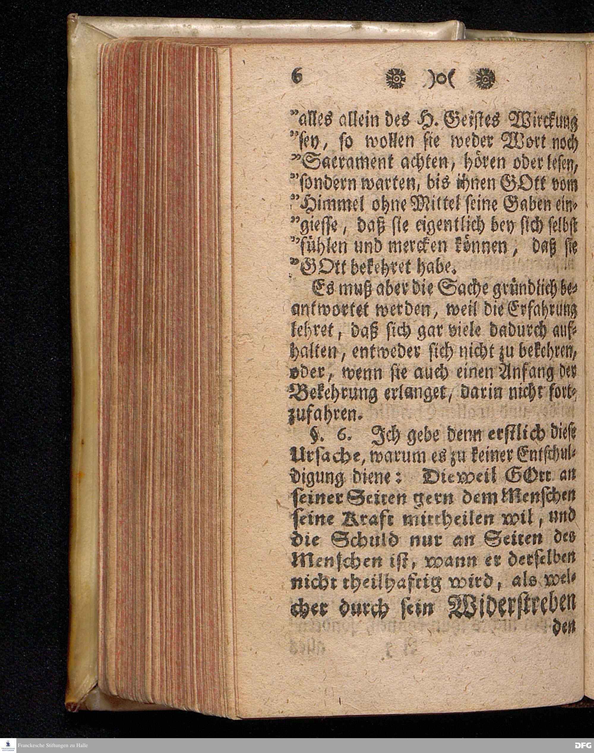 August Hermann Franckens / S.S.Theol.P.Ord.Past.Vlric.& Schol. Kurtzer Unterricht von der Möglichkeit der wahren Bekehrung zu GOtt und des thätigen Christenthums in Schriftmäßiger Beantwortung der gar gemeinen, aber nichtigen Ausflucht / So darin gesuchet wird, daß man ihme selbst nichts nehmen, noch aus eigenen Kräften sich bekehren oder frömmer werden könne. Revidirt und zum sechstenmal gedruckt. HALLE, in Verlegung des Wäysenhauses. 1728.