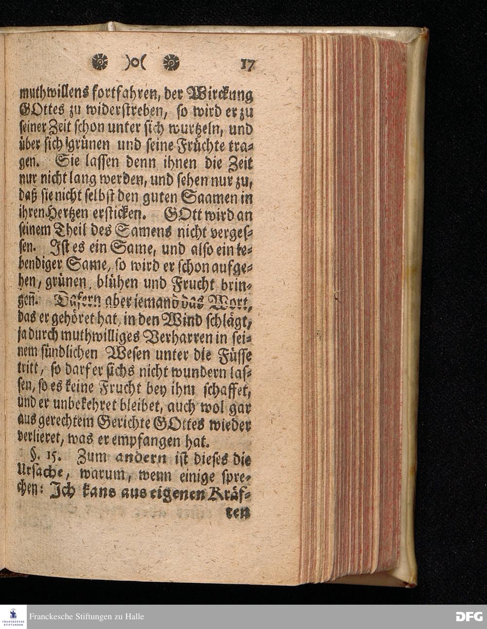 August Hermann Franckens / S.S.Theol.P.Ord.Past.Vlric.& Schol. Kurtzer Unterricht von der Möglichkeit der wahren Bekehrung zu GOtt und des thätigen Christenthums in Schriftmäßiger Beantwortung der gar gemeinen, aber nichtigen Ausflucht / So darin gesuchet wird, daß man ihme selbst nichts nehmen, noch aus eigenen Kräften sich bekehren oder frömmer werden könne. Revidirt und zum sechstenmal gedruckt. HALLE, in Verlegung des Wäysenhauses. 1728.