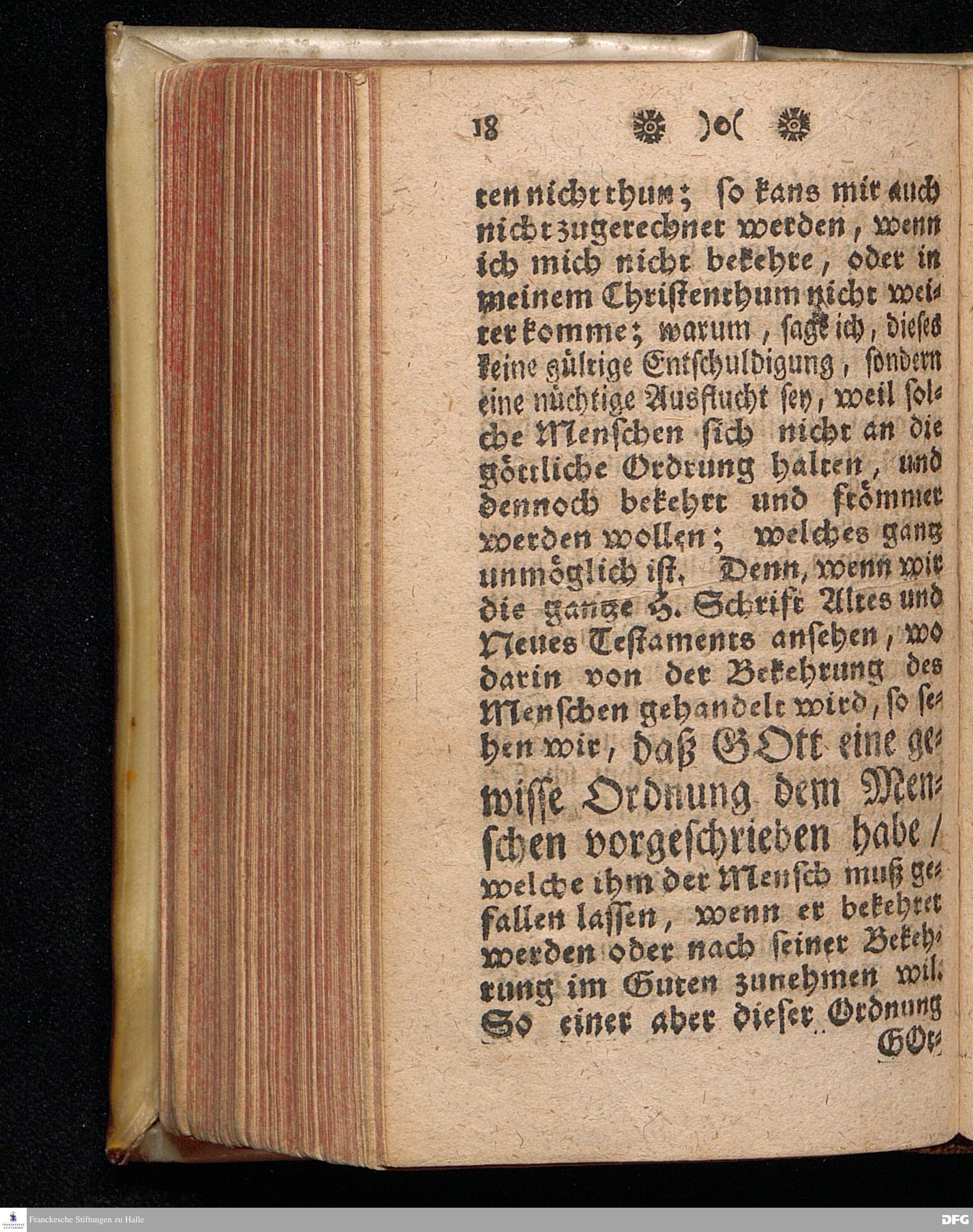 August Hermann Franckens / S.S.Theol.P.Ord.Past.Vlric.& Schol. Kurtzer Unterricht von der Möglichkeit der wahren Bekehrung zu GOtt und des thätigen Christenthums in Schriftmäßiger Beantwortung der gar gemeinen, aber nichtigen Ausflucht / So darin gesuchet wird, daß man ihme selbst nichts nehmen, noch aus eigenen Kräften sich bekehren oder frömmer werden könne. Revidirt und zum sechstenmal gedruckt. HALLE, in Verlegung des Wäysenhauses. 1728.