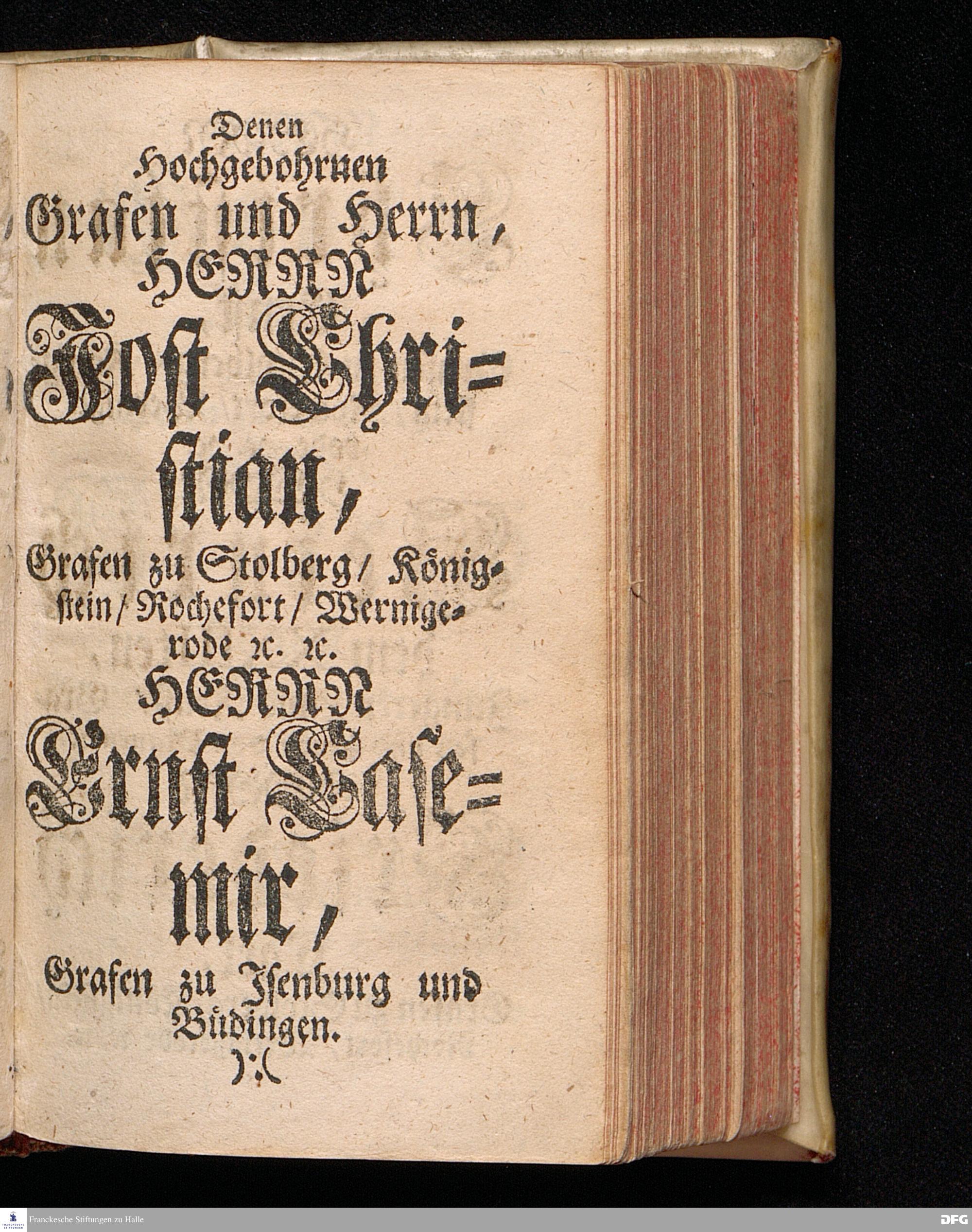 Des Namens JESU Herrliche Bedeutung, rechter Gebrauch / wie auch Segens= und Lebens=volle Kraft / In einer Predigt über den Evangelischen Text Luc.II. v.21. In der St.Georgen=Kirche zu Glaucha an Halle Am Neuen=Jahrs=Tage 1715. vorgestellet von August Hermann Francken / S.Theol.Prof.Ord.& Past.Ulric. HALLE, In Verlegung des Wäysenhauses. 1723.