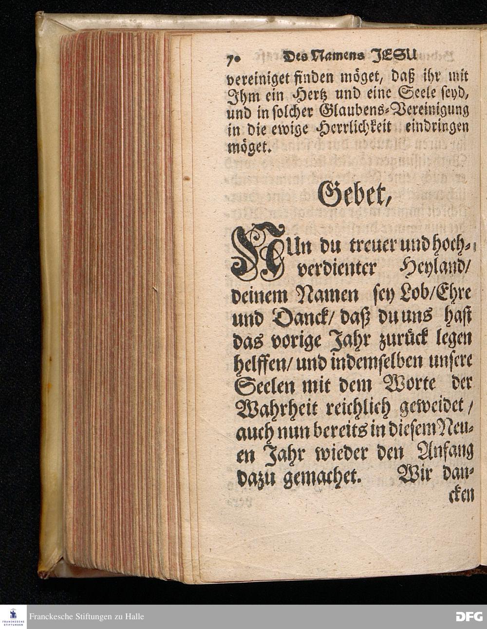 Des Namens JESU Herrliche Bedeutung, rechter Gebrauch / wie auch Segens= und Lebens=volle Kraft / In einer Predigt über den Evangelischen Text Luc.II. v.21. In der St.Georgen=Kirche zu Glaucha an Halle Am Neuen=Jahrs=Tage 1715. vorgestellet von August Hermann Francken / S.Theol.Prof.Ord.& Past.Ulric. HALLE, In Verlegung des Wäysenhauses. 1723.