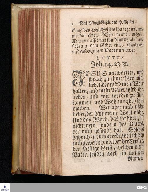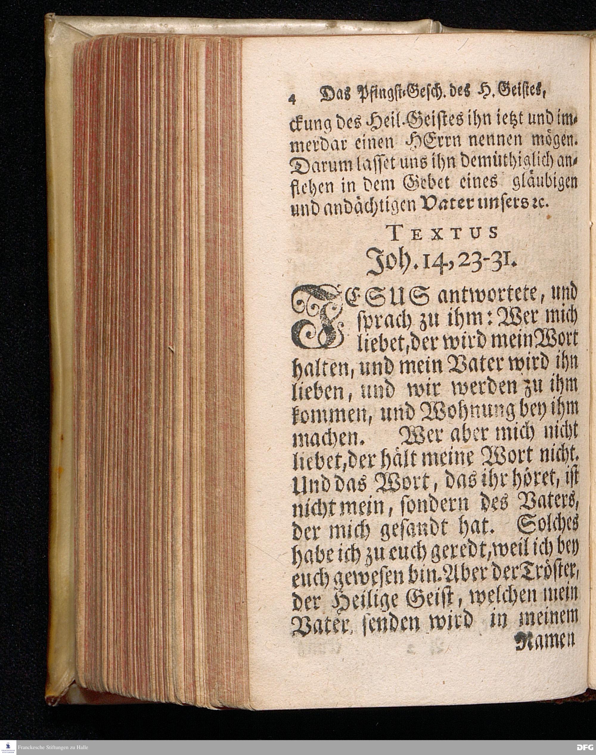 Das Eigentliche Pfingst=Geschäfte Des Heiligen Geistes, Welches ist JESUM CHristum bey denen Menschen zu verklären, Aus dem Evangelischen Text Joh.XIV, 23-31. Am I.Pfingst=Tage MDCCXIV. In der S.Georgen=Kirche zu Glaucha an Halle vorgestellet von August Hermann Francken, S.Theol.Pr.Ord.Past.Vlr.& Sch. Andere Auflage. HALLE, in Verlegung des Wäysenhauses. 1724.