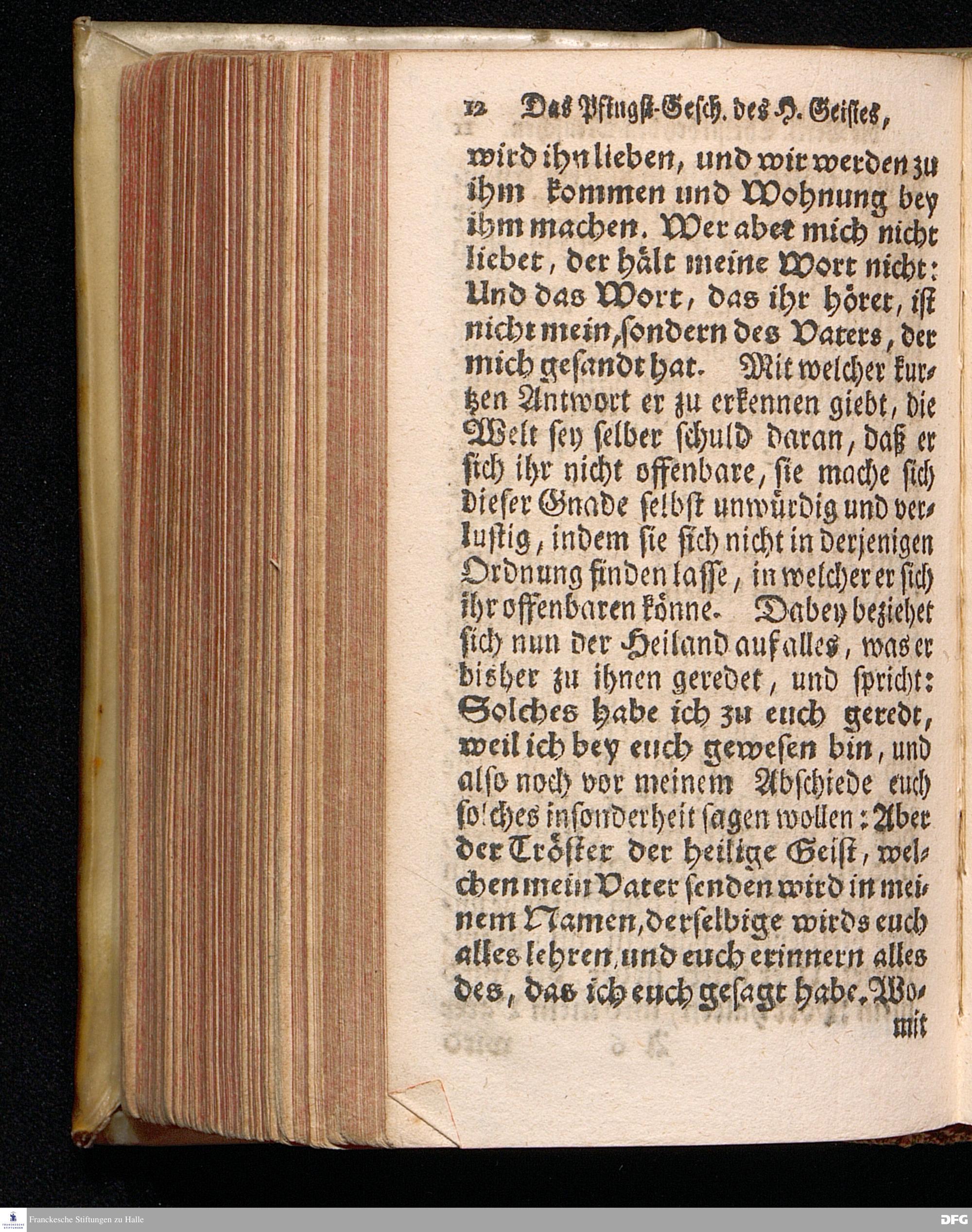 Das Eigentliche Pfingst=Geschäfte Des Heiligen Geistes, Welches ist JESUM CHristum bey denen Menschen zu verklären, Aus dem Evangelischen Text Joh.XIV, 23-31. Am I.Pfingst=Tage MDCCXIV. In der S.Georgen=Kirche zu Glaucha an Halle vorgestellet von August Hermann Francken, S.Theol.Pr.Ord.Past.Vlr.& Sch. Andere Auflage. HALLE, in Verlegung des Wäysenhauses. 1724.