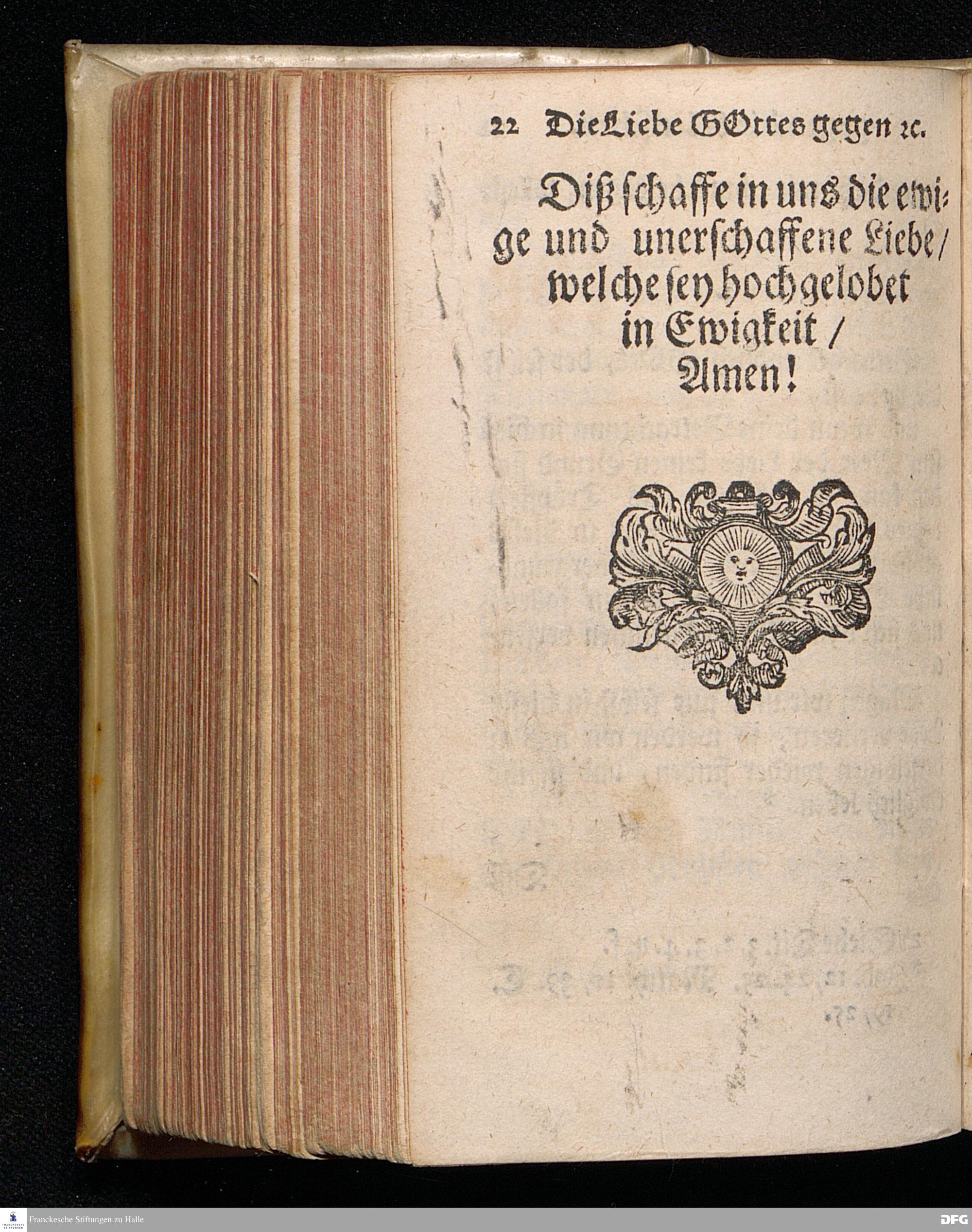 PHILANTHROPIA DEI, Das ist: Die Liebe Gottes gegen die Menschen / Der Jugend in den Schulen des Wäysen=Hauses / nach gehaltenem Examine, zu fleißiger Betrachtung und zur Aufmunterung in der Gottseligkeit, übergeben den 26.Septembr. 1705. Von August Hermann Francken / S.Theol.Prof.Ordin.Past.Vlr.& Scholarcha. Die dritte Auflage. HALLE, in Verlegung des Wäysen=Hauses. MDCCXXIII.