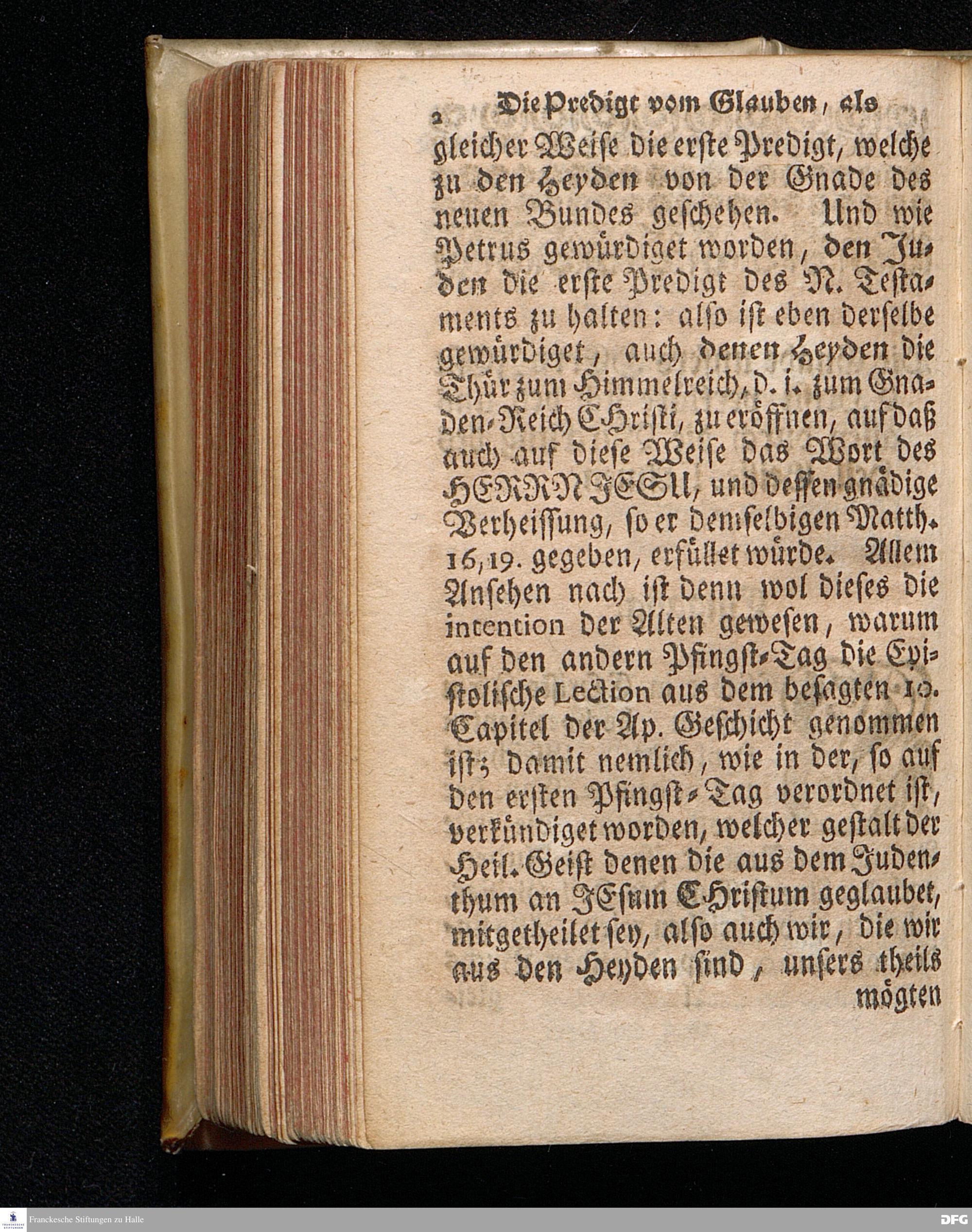 Die Predigt Vom Glauben, Als Das Mittel den Heil. Geist zu empfahen / Aus der Apost.Gesch.c.10 / 34=48. Am Andern Pfingst=Feyer=Tage In der Schul=Kirche zu Halle vorgestellet Von August Hermann Francken / S.Theol.Prof.& Past.Vlr.Gym.Schol. Andere Auflage, HALLE, Zu finden im Wäysen=Hause. MDCCXXIV.