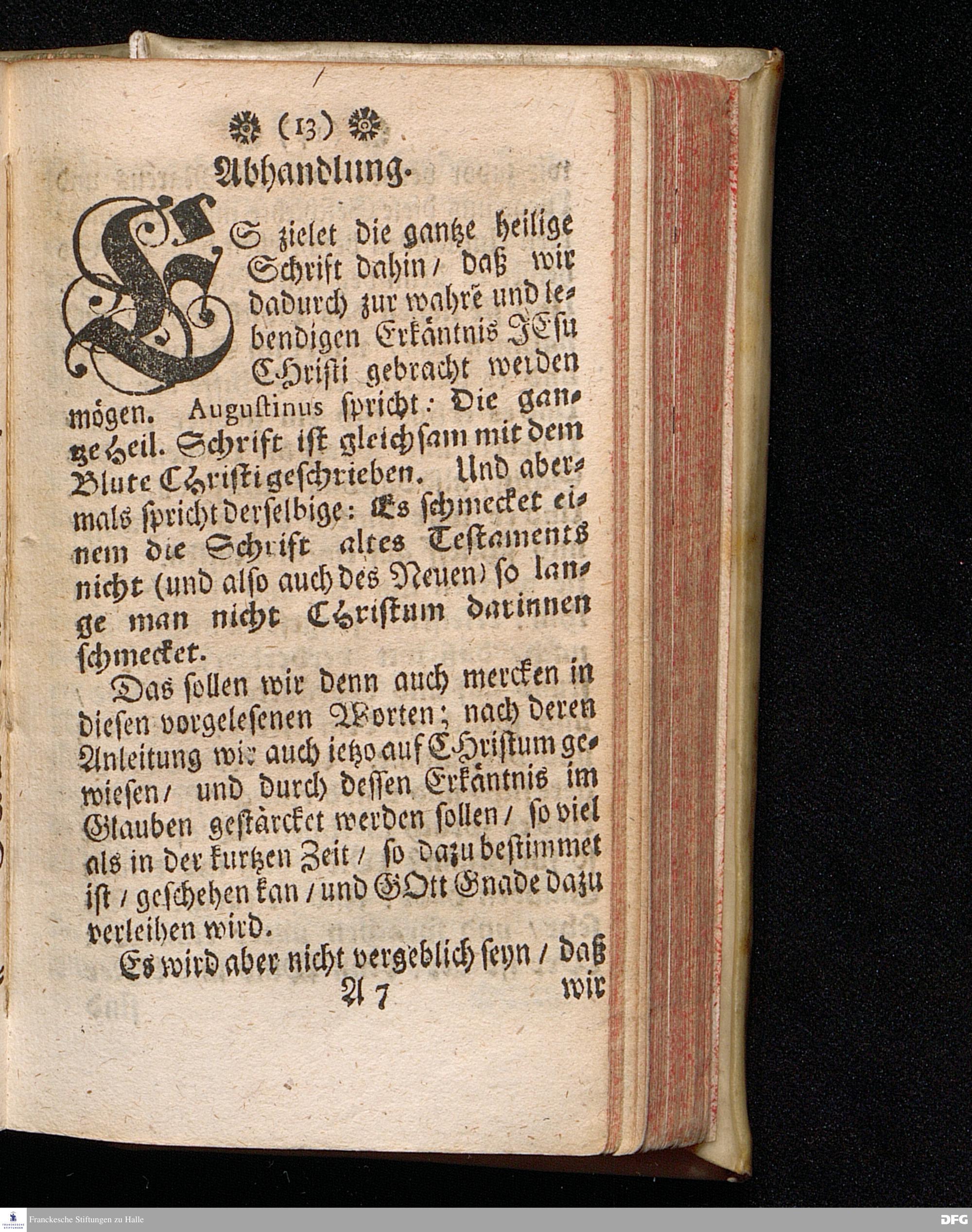 Reitzung zum Völligen Glauben Durch Vorstellung der Herrlichkeit JESU CHRISTI / Aus Der Historie von der Schiffarth CHristi / Matth.VIII, 23---27. In einem öffentlichen Vortrage Im Waysen=Hause zu Glaucha an Halle ertheilet / Und darauf zum Druck gegeben von August Hermann Francken / S.Theol.Prof.Ord.und Past.zu St.Ulrich und des Gymnasii Scholarcha. HALLE, in Verlegung des Wäysen=Hauses, 1715.