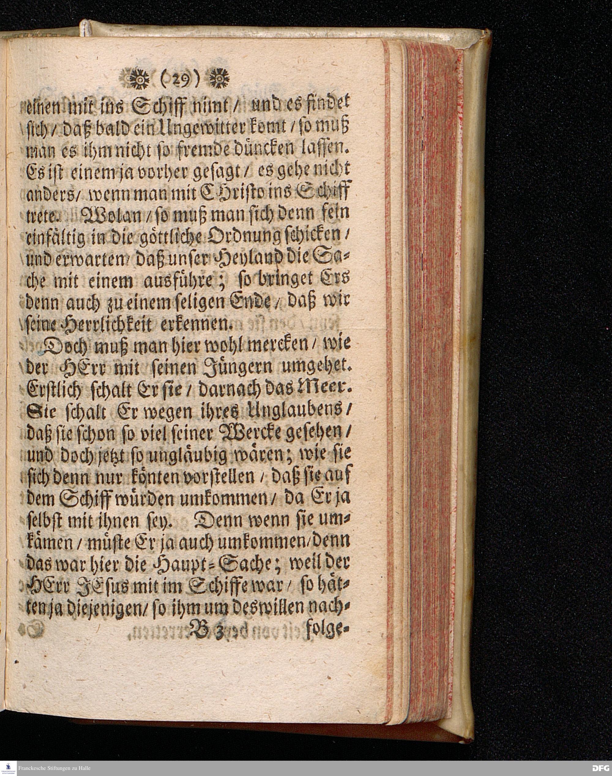 Reitzung zum Völligen Glauben Durch Vorstellung der Herrlichkeit JESU CHRISTI / Aus Der Historie von der Schiffarth CHristi / Matth.VIII, 23---27. In einem öffentlichen Vortrage Im Waysen=Hause zu Glaucha an Halle ertheilet / Und darauf zum Druck gegeben von August Hermann Francken / S.Theol.Prof.Ord.und Past.zu St.Ulrich und des Gymnasii Scholarcha. HALLE, in Verlegung des Wäysen=Hauses, 1715.