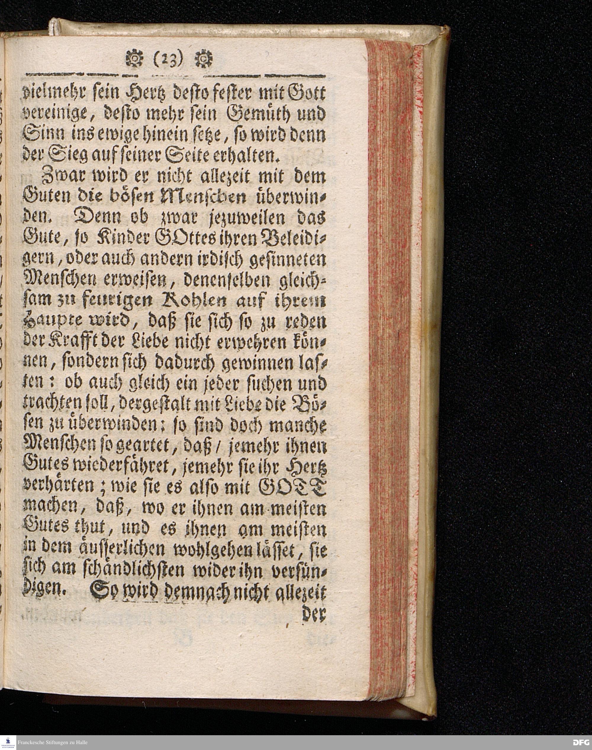 Der zweyfältige Sieg der Kinder Gottes über das Böse / Indem sie I.Sich nicht überwinden lassen vom Bösen; II.Das Böse mit Gutem überwinden: In einer Predigt über Rom.XII, 21. Am 3.Sonntage nach Epiphan. Anno 1711. vorgestellet in der Schul=Kirche in Halle / Von August Hermann Francken / S.Theol.Prof.Ord.und Past.Vlric. Editio II. HALLE / Im Waysen=Hause / 1723.