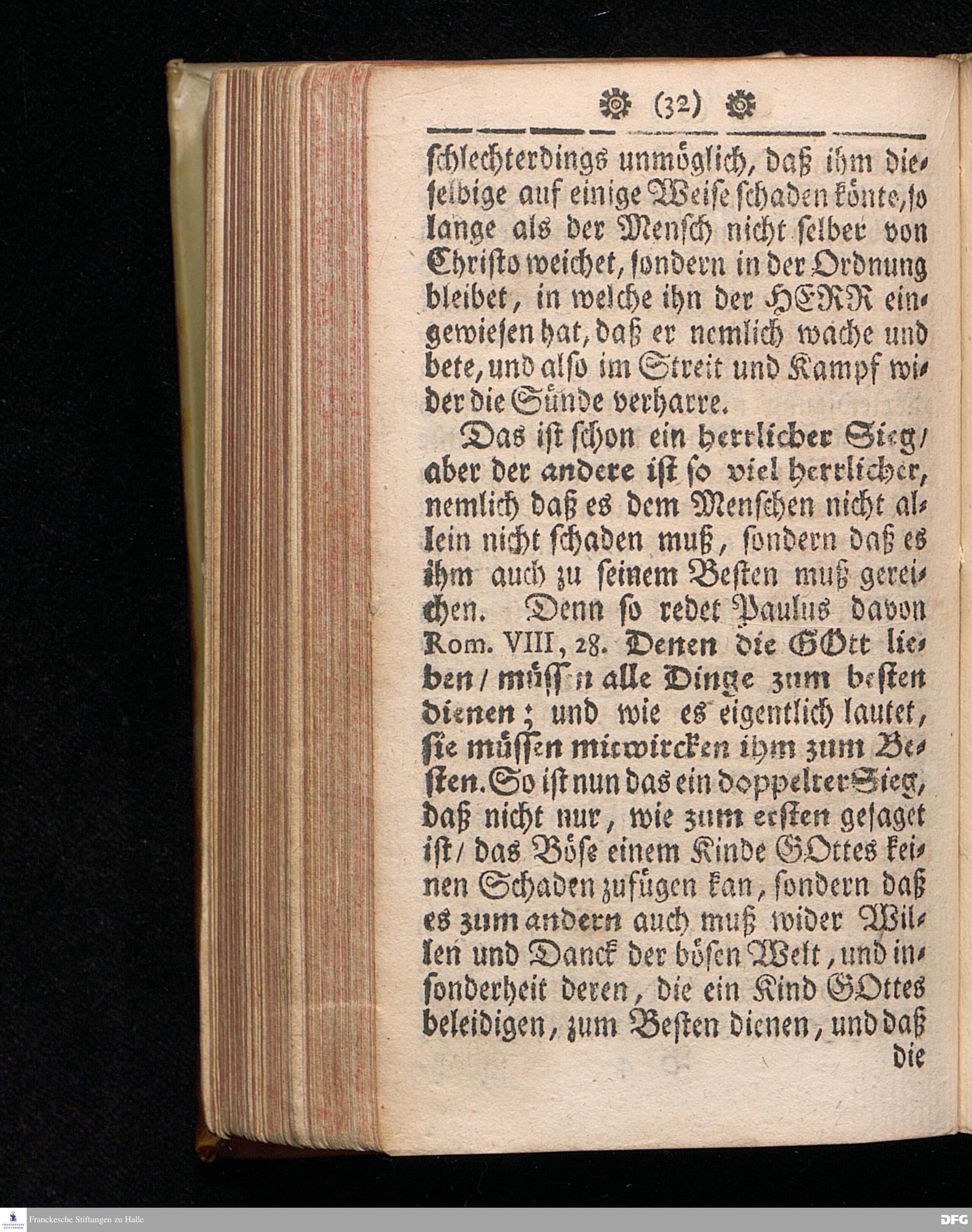 Der zweyfältige Sieg der Kinder Gottes über das Böse / Indem sie I.Sich nicht überwinden lassen vom Bösen; II.Das Böse mit Gutem überwinden: In einer Predigt über Rom.XII, 21. Am 3.Sonntage nach Epiphan. Anno 1711. vorgestellet in der Schul=Kirche in Halle / Von August Hermann Francken / S.Theol.Prof.Ord.und Past.Vlric. Editio II. HALLE / Im Waysen=Hause / 1723.