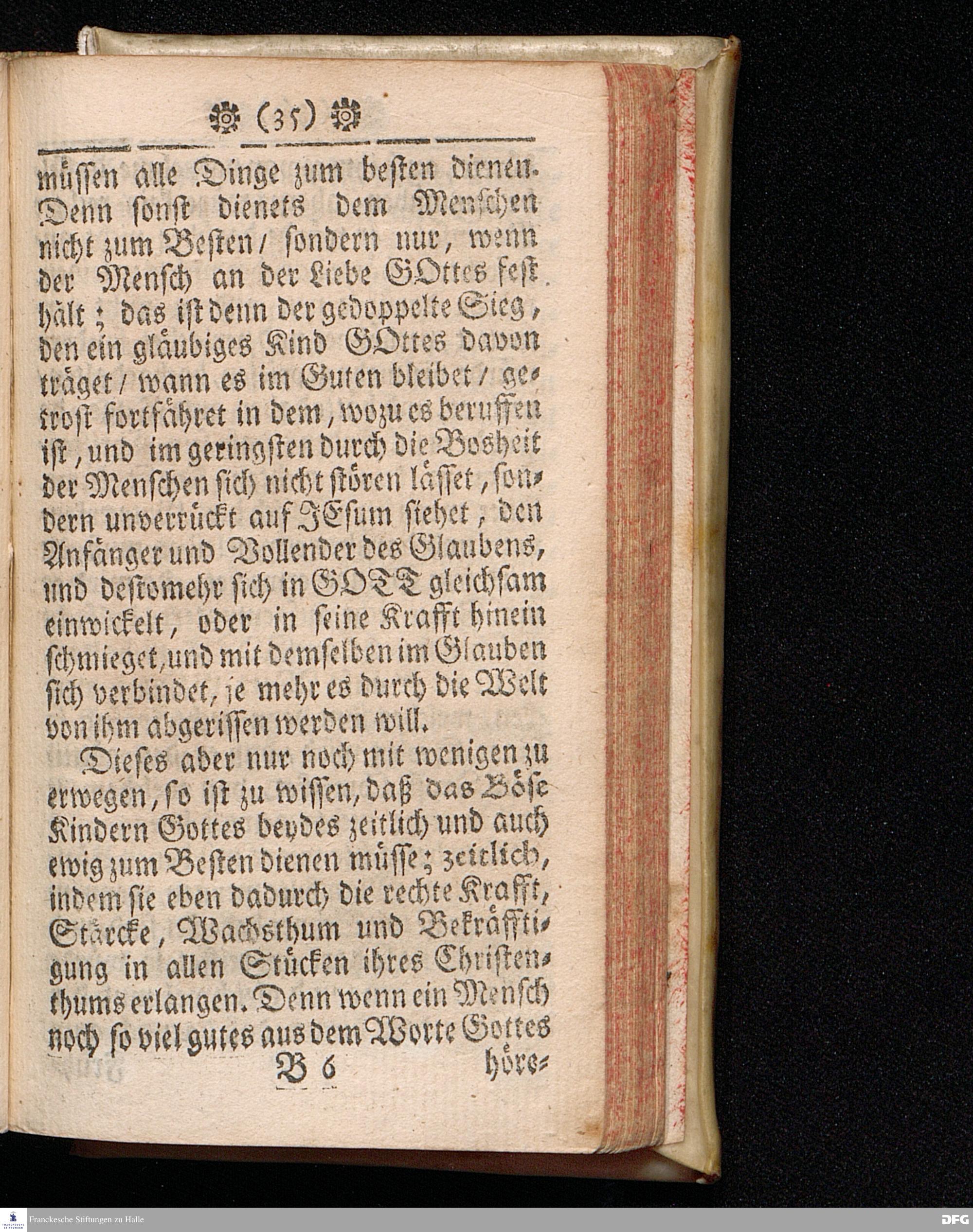 Der zweyfältige Sieg der Kinder Gottes über das Böse / Indem sie I.Sich nicht überwinden lassen vom Bösen; II.Das Böse mit Gutem überwinden: In einer Predigt über Rom.XII, 21. Am 3.Sonntage nach Epiphan. Anno 1711. vorgestellet in der Schul=Kirche in Halle / Von August Hermann Francken / S.Theol.Prof.Ord.und Past.Vlric. Editio II. HALLE / Im Waysen=Hause / 1723.