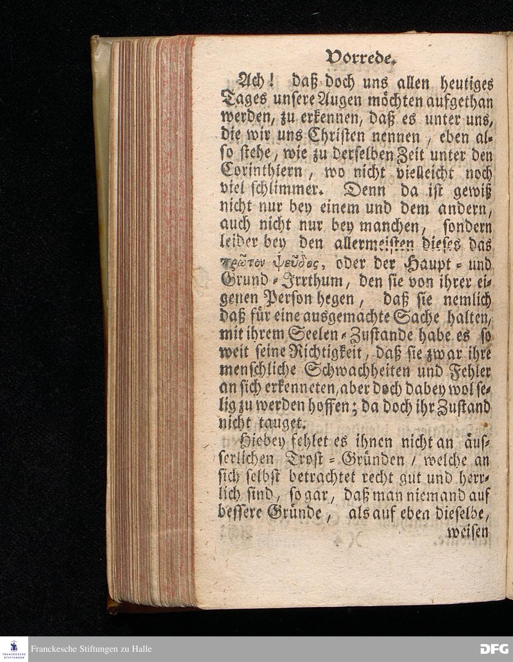 Spiegel der Aufnahme CHRISTI In dem Exempel derer / die Ihn aufgenommen und nicht aufgenommen haben, Zur Nachfolge und Warnung, Am 1sten Advents=Soñtage A.1717. aus Matth.21, 1==9. In einer auf der Universität Tübingen liebreichst aufgetragenen, und in der Haupt=Kirche daselbst abgelegten Predigt vorgestellet Und auf Erfordern zum Druck gegeben von August Hermann Francken / S.Theol.Professore, Past. und Scholarcha zu Halle im Hertzogthum Magdeb. Dritte Auflage. Nach dem zu Stuttgart gedruckten Exemplar in Halle abgedruckt. 1723.