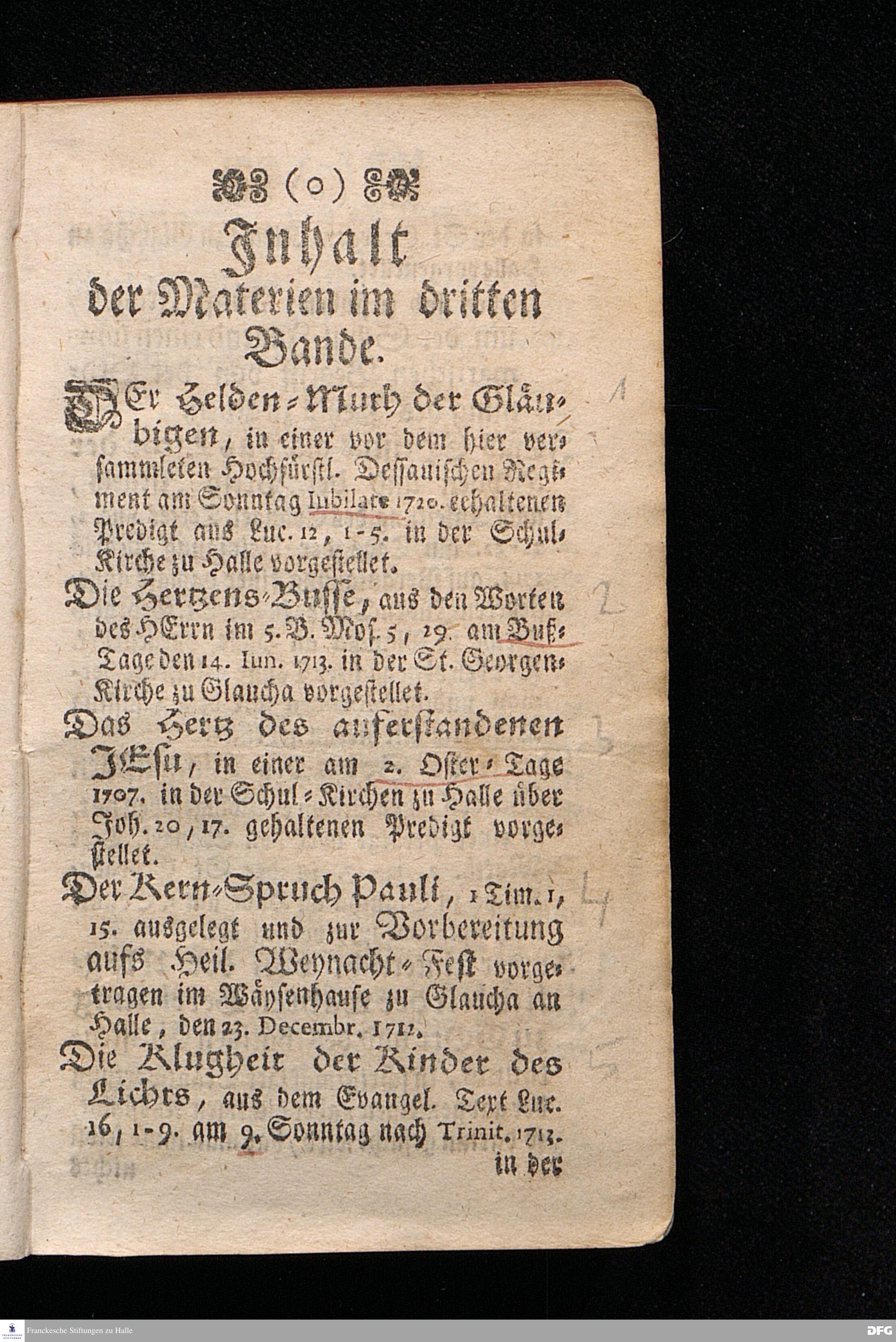August Hermann Franckens / S.Theol.Prof.Ordin.Past.Vlr.& Scholarchæ, Predigten und Tractätlein / Welche Bis anhero eintzeln heraus gegeben, und nun auf vieler Christlichen Freunde öfters Begehren zusammen gedruckt sind. Erster Band. A - E. HALLE, in Verleg.des Wäysen=Hauses. MDCCXXIII.
