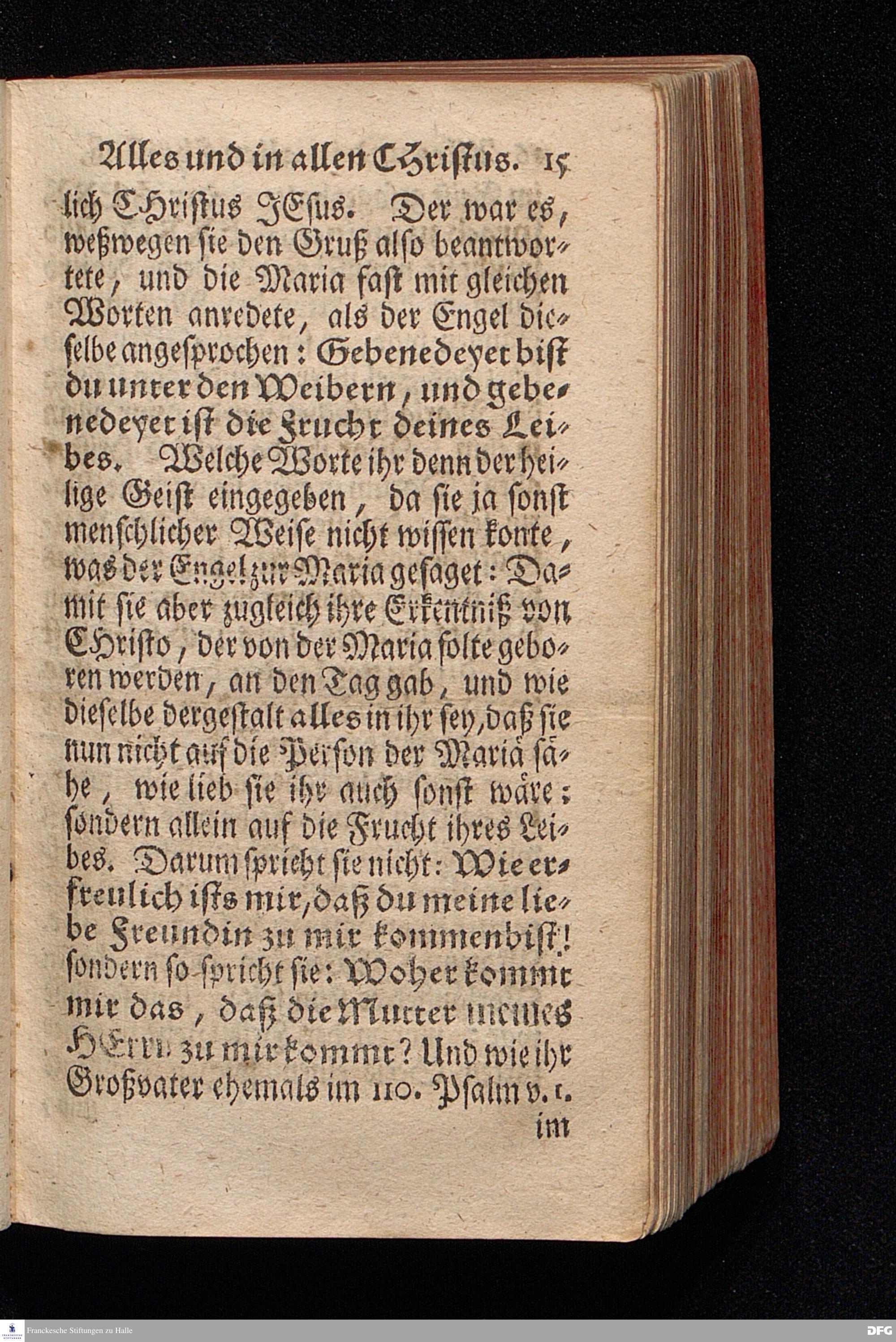 Alles Und In allen Christus / Aus dem Evangelischen Text Luc.I, 39--56. Am Fest der Heimsuchung Mariä 1714. In der Stadt Cönnern im Hertzogthum Magdeburg / In öffentlicher Predigt vorgestellet von August Hermann Francken / S.Theol.Prof.Past.Ulr.& Scholarch. EDITIO II. Der Jugend in den Schulen des Wäysenhauses nach gehaltenem Examine ausgetheilet den 25.Julii MDCCXXII. HALLE, In Verlegung des Wäysenhauses, MDCCXXII.