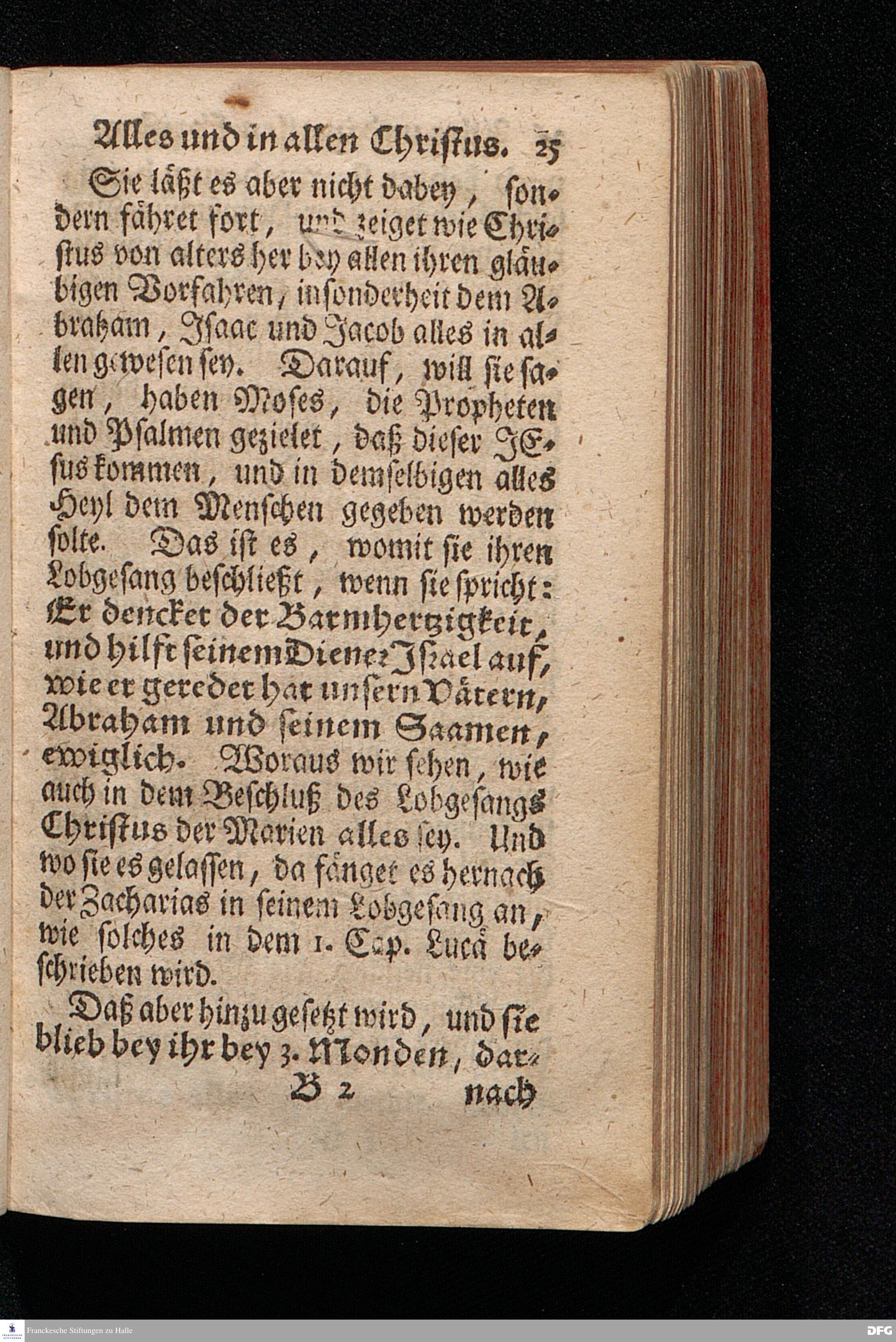 Alles Und In allen Christus / Aus dem Evangelischen Text Luc.I, 39--56. Am Fest der Heimsuchung Mariä 1714. In der Stadt Cönnern im Hertzogthum Magdeburg / In öffentlicher Predigt vorgestellet von August Hermann Francken / S.Theol.Prof.Past.Ulr.& Scholarch. EDITIO II. Der Jugend in den Schulen des Wäysenhauses nach gehaltenem Examine ausgetheilet den 25.Julii MDCCXXII. HALLE, In Verlegung des Wäysenhauses, MDCCXXII.