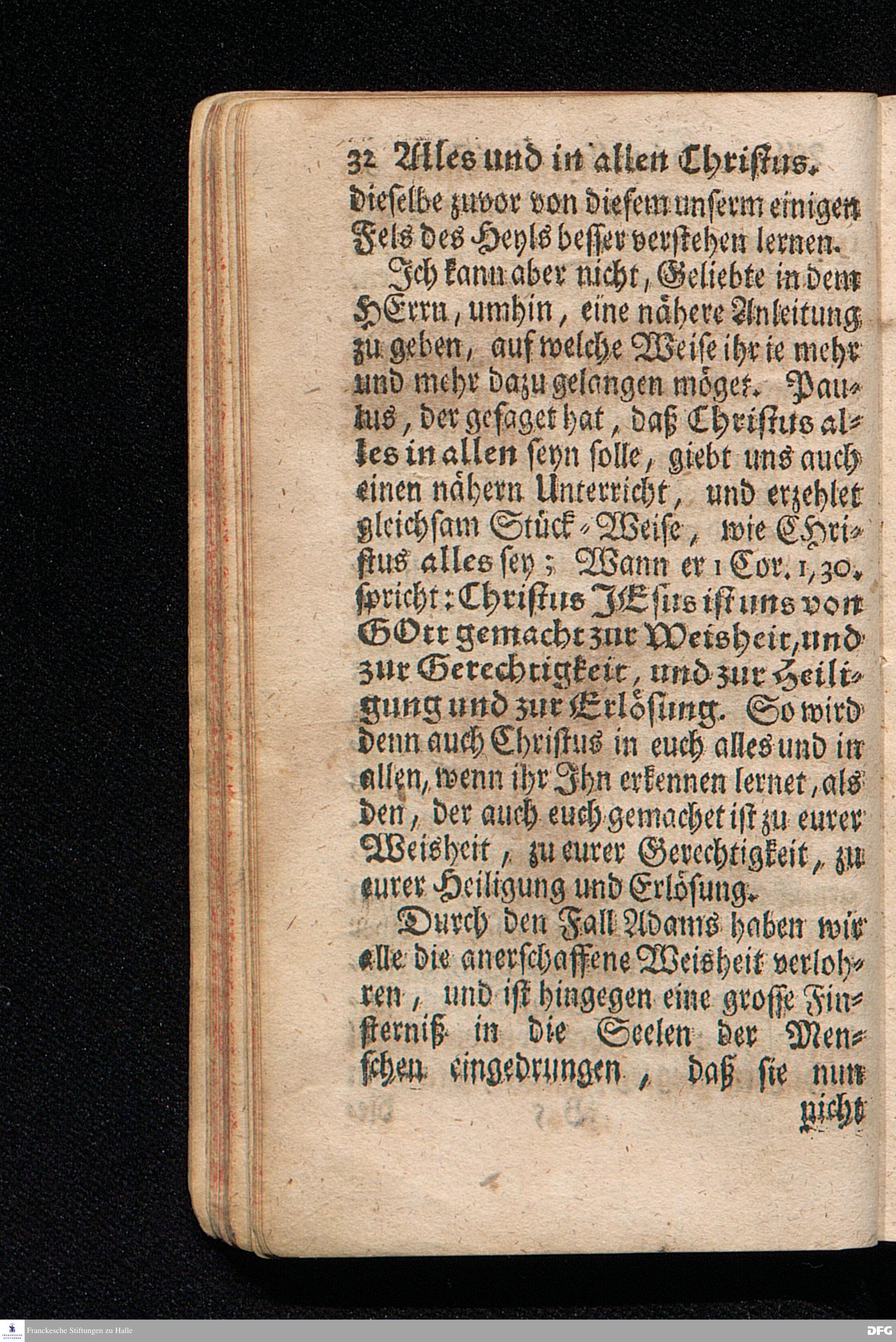 Alles Und In allen Christus / Aus dem Evangelischen Text Luc.I, 39--56. Am Fest der Heimsuchung Mariä 1714. In der Stadt Cönnern im Hertzogthum Magdeburg / In öffentlicher Predigt vorgestellet von August Hermann Francken / S.Theol.Prof.Past.Ulr.& Scholarch. EDITIO II. Der Jugend in den Schulen des Wäysenhauses nach gehaltenem Examine ausgetheilet den 25.Julii MDCCXXII. HALLE, In Verlegung des Wäysenhauses, MDCCXXII.