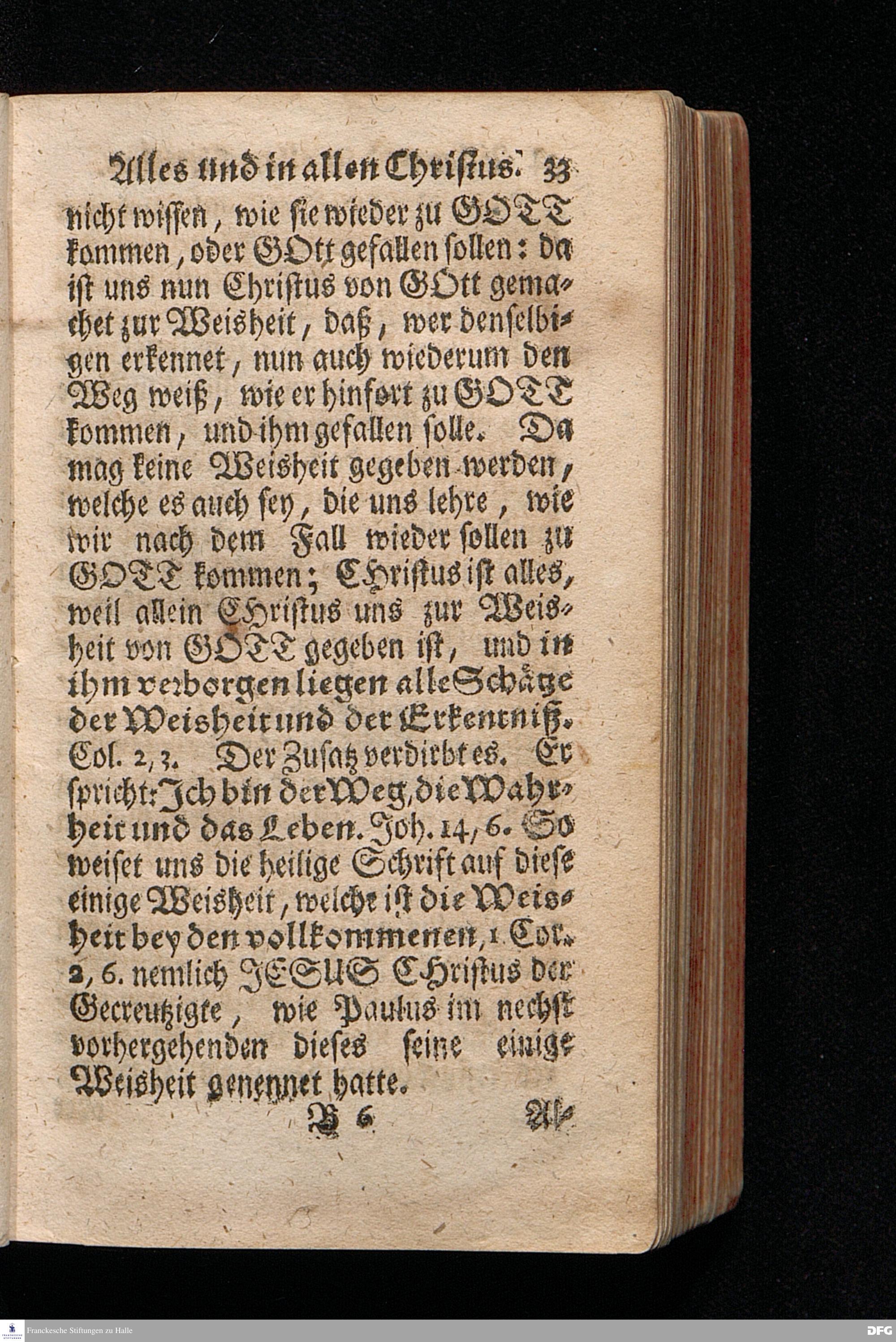 Alles Und In allen Christus / Aus dem Evangelischen Text Luc.I, 39--56. Am Fest der Heimsuchung Mariä 1714. In der Stadt Cönnern im Hertzogthum Magdeburg / In öffentlicher Predigt vorgestellet von August Hermann Francken / S.Theol.Prof.Past.Ulr.& Scholarch. EDITIO II. Der Jugend in den Schulen des Wäysenhauses nach gehaltenem Examine ausgetheilet den 25.Julii MDCCXXII. HALLE, In Verlegung des Wäysenhauses, MDCCXXII.