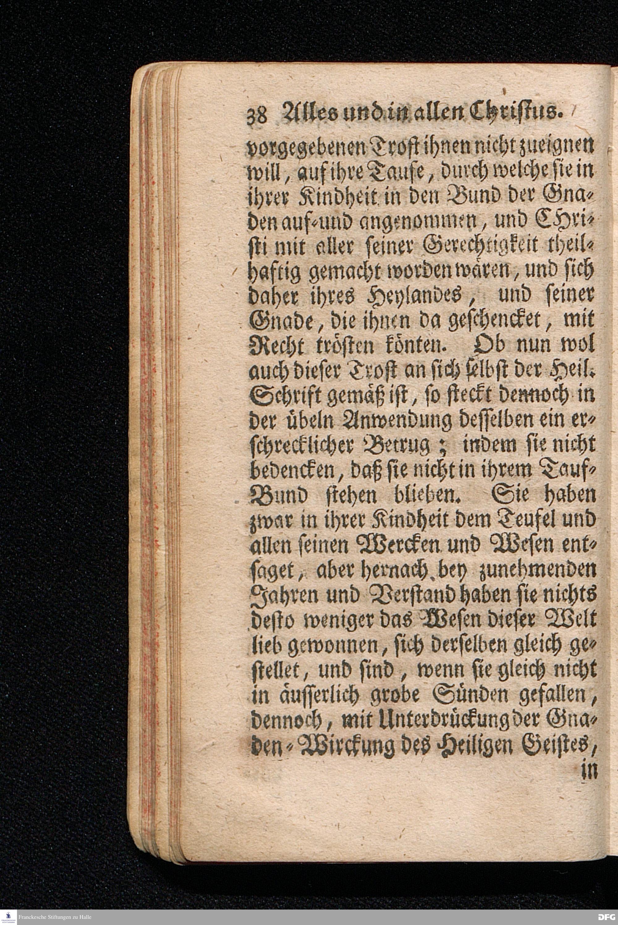 Alles Und In allen Christus / Aus dem Evangelischen Text Luc.I, 39--56. Am Fest der Heimsuchung Mariä 1714. In der Stadt Cönnern im Hertzogthum Magdeburg / In öffentlicher Predigt vorgestellet von August Hermann Francken / S.Theol.Prof.Past.Ulr.& Scholarch. EDITIO II. Der Jugend in den Schulen des Wäysenhauses nach gehaltenem Examine ausgetheilet den 25.Julii MDCCXXII. HALLE, In Verlegung des Wäysenhauses, MDCCXXII.
